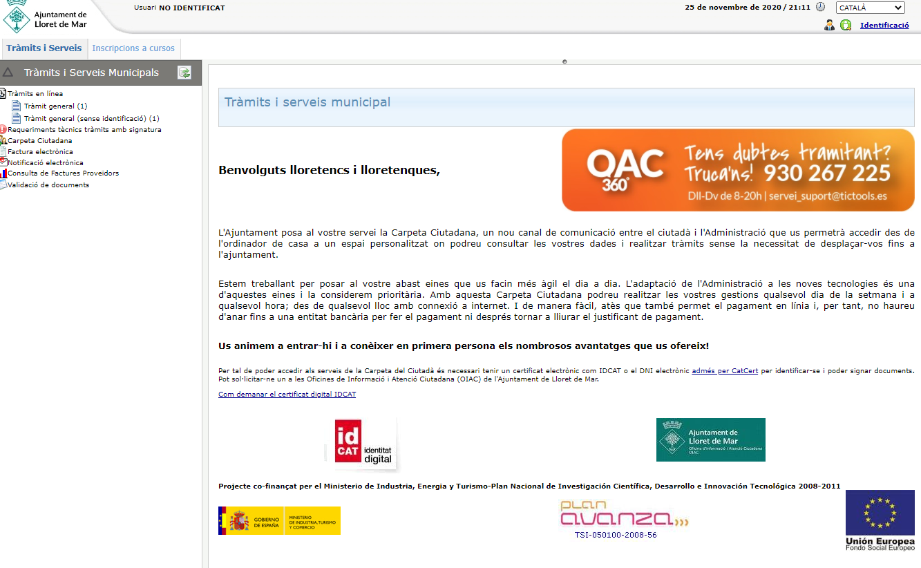 L'OAC360° és un suport pensat per ajudar a resoldre dubtes o dificultats a l'hora de fer un tràmit en línia (sol·licitud d'ajuts o subvencions, certificats d'empadronament, llicències d'obres o d'activitats, la instal·lació d'un certificat digital -idCAT o idCAT Mòbil, etc).