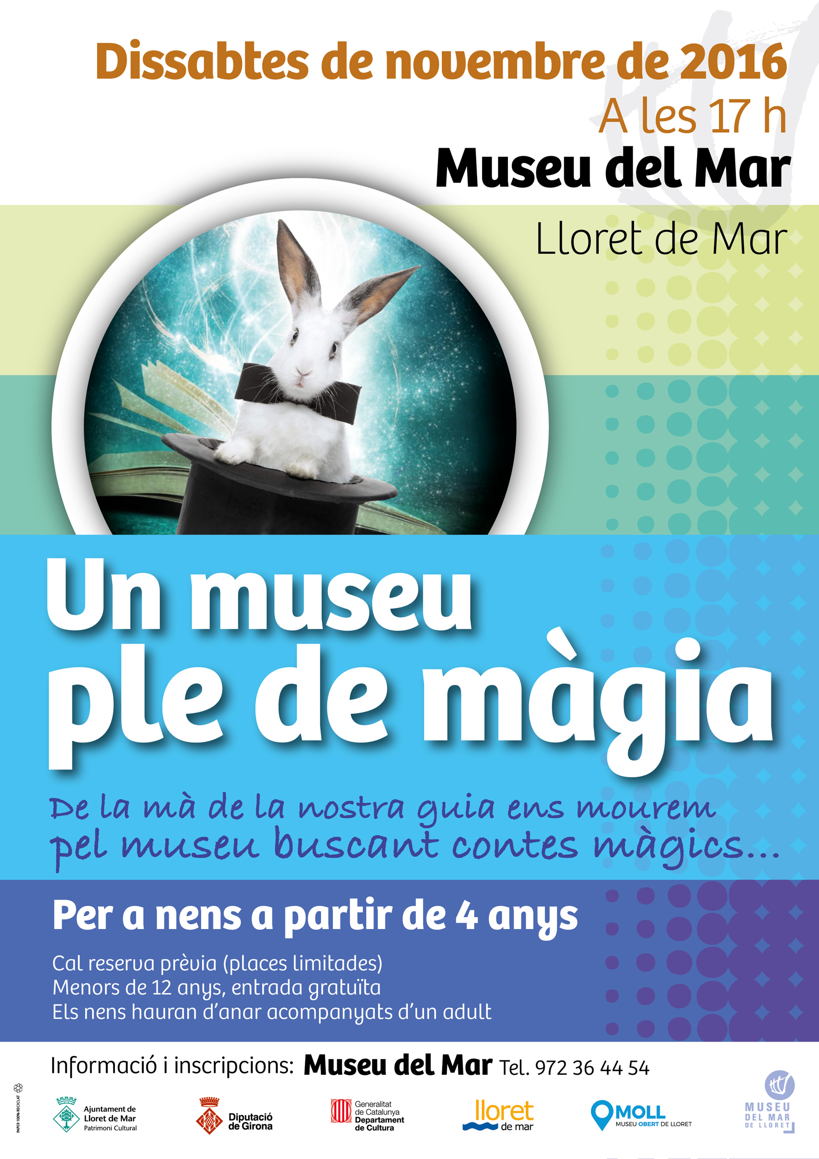 Una guia i el seu llibre màgic faran cada dissabte de novembre una visita guiada pel Museu del Mar de Lloret. Un llibre que troba contes perduts i oblidats. Quan se’n troba un, el llibre s’il·lumina. Els participants es mouran pel museu buscant contes màgics. A la sala de l’Agustí, a la sala de les drassanes i a la sala de l’almorratxa, s’explicaran contes inventats, relacionats amb la història, les tradicions, el patrimoni de Lloret i la màgia. A més, cada conte va acompanyat d’un truc de màgia que té per objectiu sorprendre els més petits.