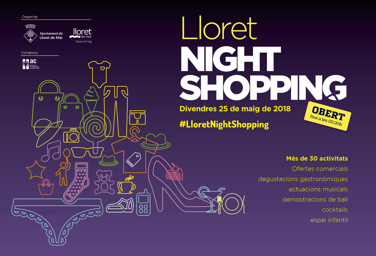 Demà a partir de les 18.00 hores, arriba a Lloret una nova edició del Lloret Night Shopping, una nit de compres i activitats diverses a l’aire lliure en la qual hi ha moltes propostes d’oci per gaudir de l’ambient comercial de la vila.