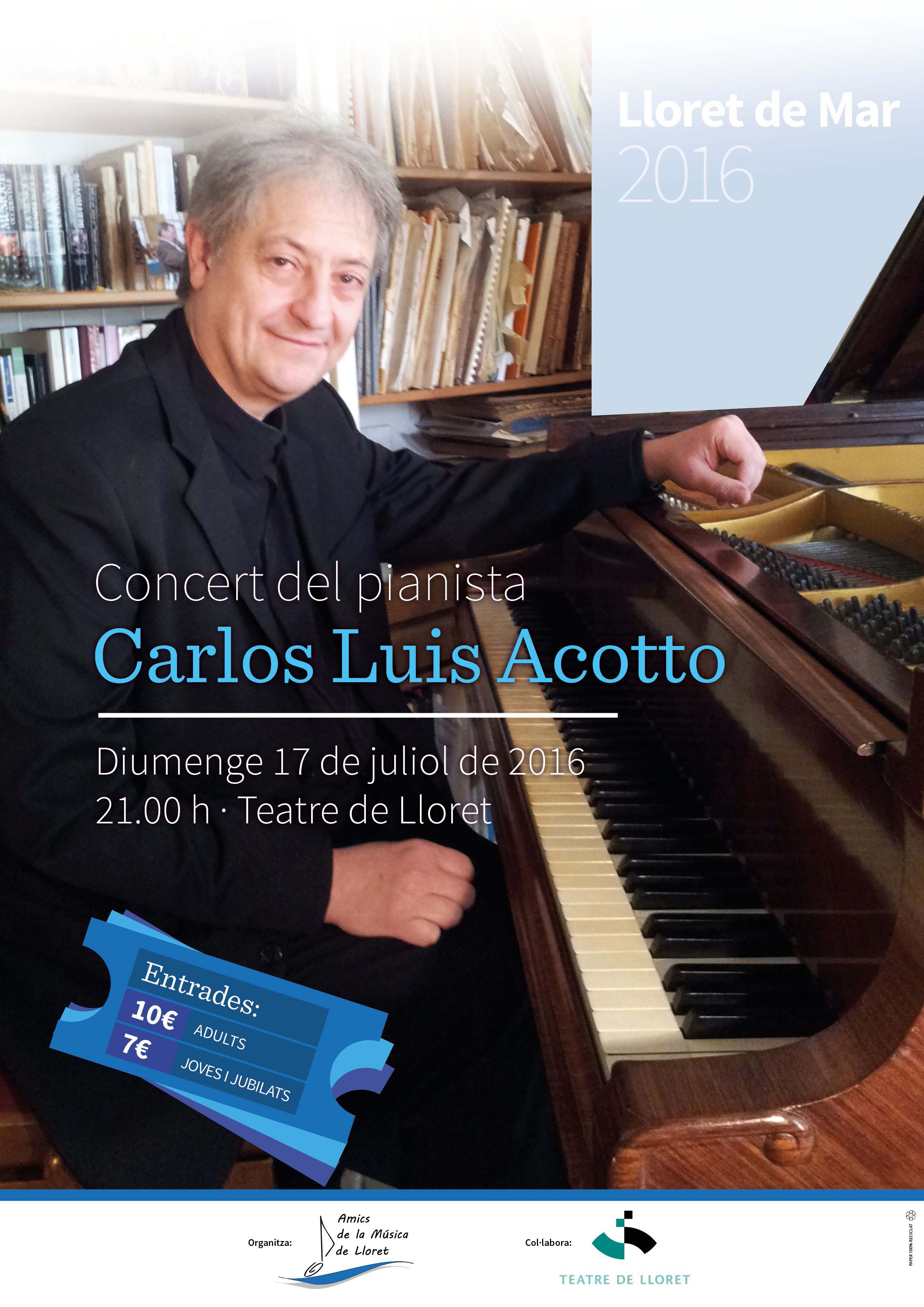 El músic franco-argentí Carlos Luis Acotto oferirà un concert, el proper diumenge 17 de juliol, al Teatre de Lloret. Acotto presentarà un repertori amb obres de Beethoven, Fidemraizer, Ravel, Schumann i Liszt.