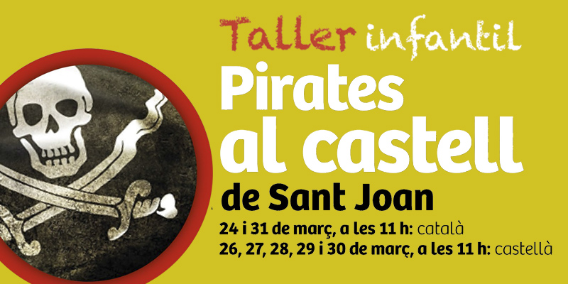 Pirates al Castell- es farà els dies 24, 26, 27, 28, 29, 30 i 31 de març, a les 11 h. L’objectiu de l’activitat és aconseguir plantar la bandera pirata al castell de Sant Joan per tal que tots els participants, tant infants com adults, el puguin conquerir. Els nens hauran de superar diferents obstacles i proves des de baix el castell fins a la torre més alta.
