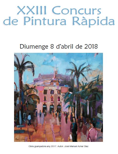 Torna el concurs de Pintura Ràpida. L’horari per a presentar-s’hi i pintar els quadres és de 8 a 13.30 h. Les tècniques que s’utilitzen són oli, aquarel·la i altres procediments. Es requereixen, però, unes mides mínimes i màximes: mínim 55 per 33 cm i màxim 73 per 73 cm.