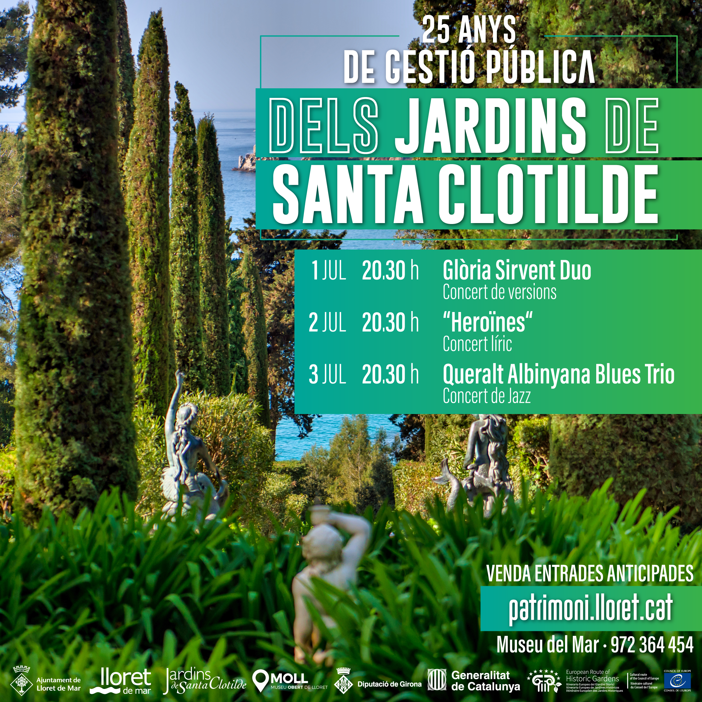 Els Jardins de Santa Clotilde de Lloret celebren 25 anys de gestió pública. Per aquest motiu, s’ha organitzat una celebració pel dijous 30 de juny i tres concerts programats el cap de setmana de l’1 al 3 de juliol.