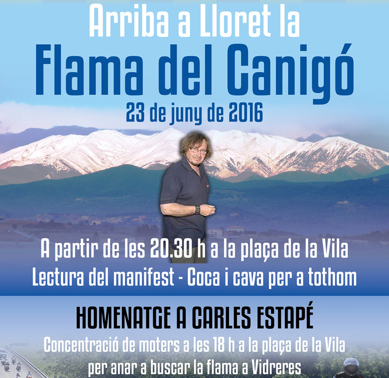 El proper dijous, 23 de juny, revetlla de Sant Joan, la Flama del Canigó arribarà a Lloret. Enguany però l’acte pren un caire especial, en homenatge a Carles Estapé, que va morir el passat mes de gener. Estapé va ser qui durant molts anys va impulsar a Lloret aquesta tradició catalana, quan era president d’Òmnium Cultural a la Selva Marítima. De fet, va ser qui va descobrir l’arribada de la Flama als moters, els quals la porten ben motoritzada fins a Lloret.