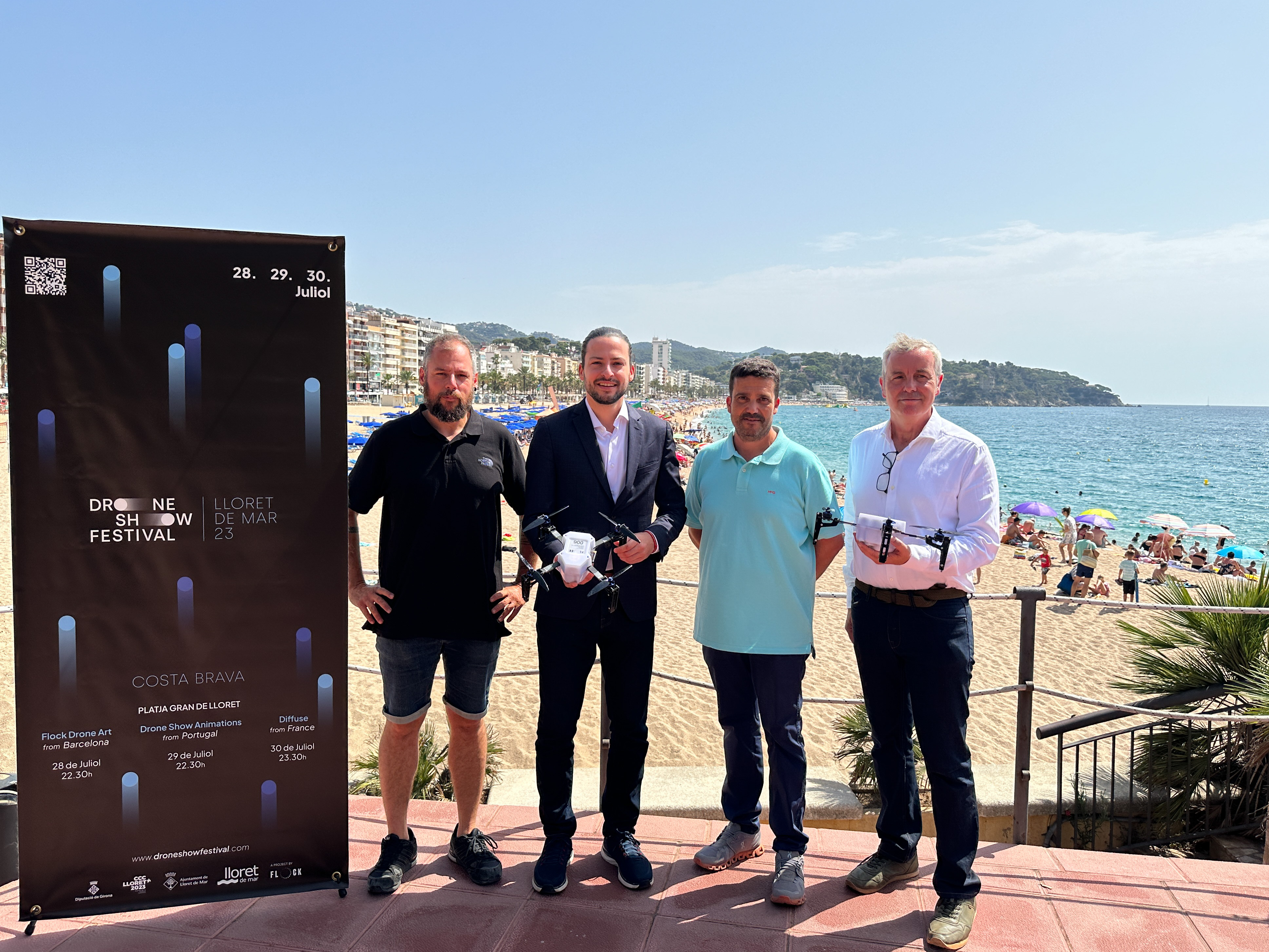 La tercera edició del Drone Show Festival de Lloret de Mar arriba carregada de novetats. L’alcalde de Lloret, Adrià Lamelas; el regidor de Promoció Econòmica, Nino Goméz i el tinent d’alcalde, Frederich Guich han presentat avui el cartell oficial d’aquest 2023 que enguany reforça el seu caràcter internacional i per primera vegada acollirà empreses especialitzades en espectacles de drons de Catalunya, França i Portugal. Actualment, el Drone Show Festival és l’únic certamen del món que reuneix propostes artístiques amb drons d’empreses de diferents països. La voluntat dels organitzadors és consolidar -se com el festival internacional de referència en aquesta modalitat artística i vertebrar un esdeveniment singular, sostenible i de gran valor afegit.