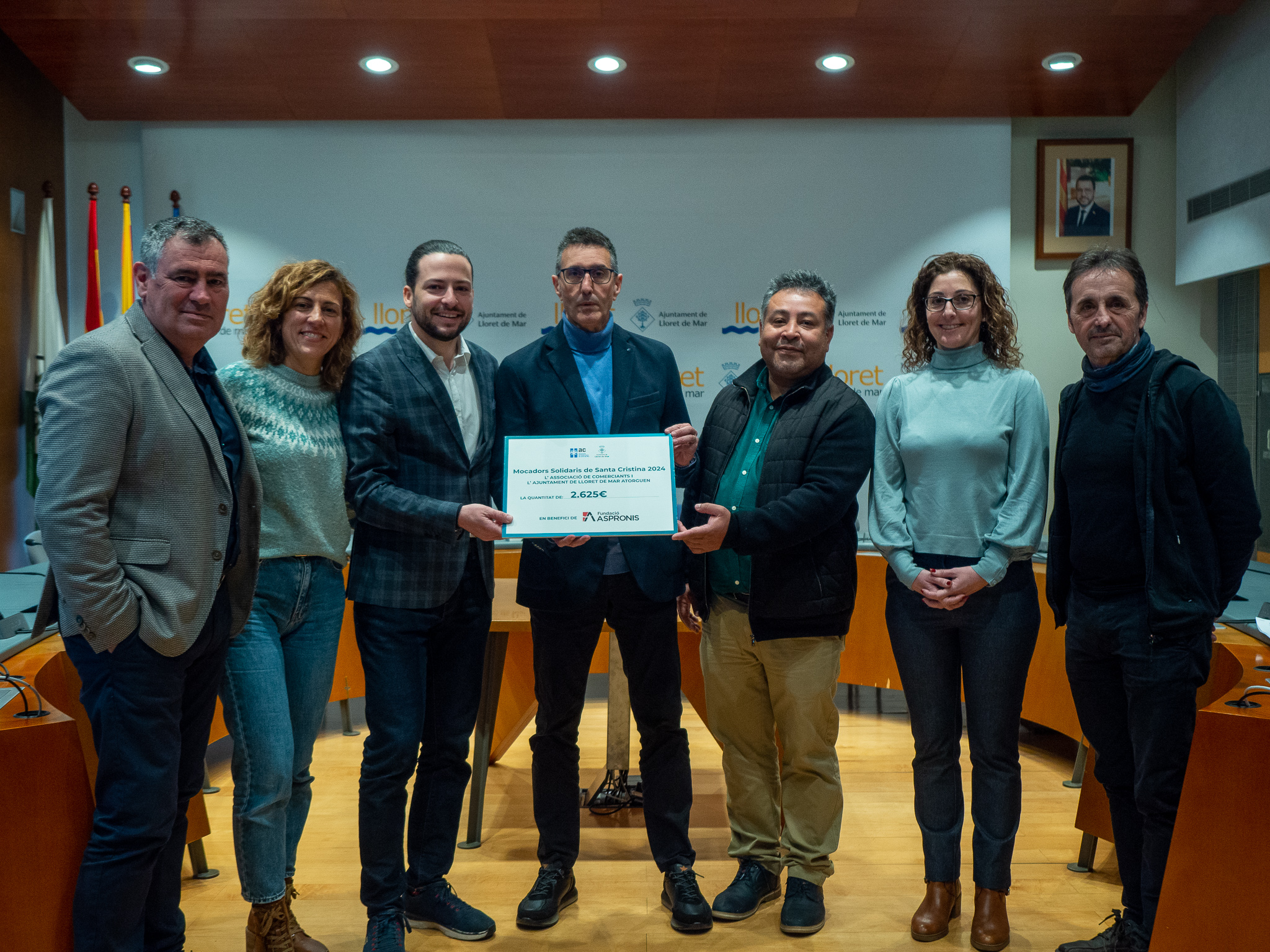 L'Ajuntament de Lloret i l'Associació de Comerciants han fet entrega d'un xec de 2.625 euros a la Fundació ASPRONIS, que atén persones amb discapacitat intel·lectual. Es tracta de la xifra recaptada amb la campanya solidària que es fa cada estiu amb motiu de la celebració de la Festa Major de Santa Cristina.