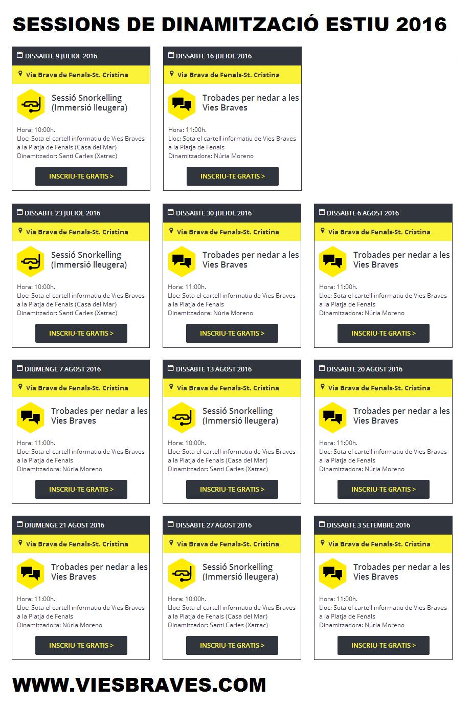 En total, al litoral de les comarques de Girona s’hi han programat més de 100 dinamitzacions per la temporada 2016 que inclouen trobades per nedar en grup a les diverses Vies Braves, sessions d’snorkelling i neteges de fons marins.