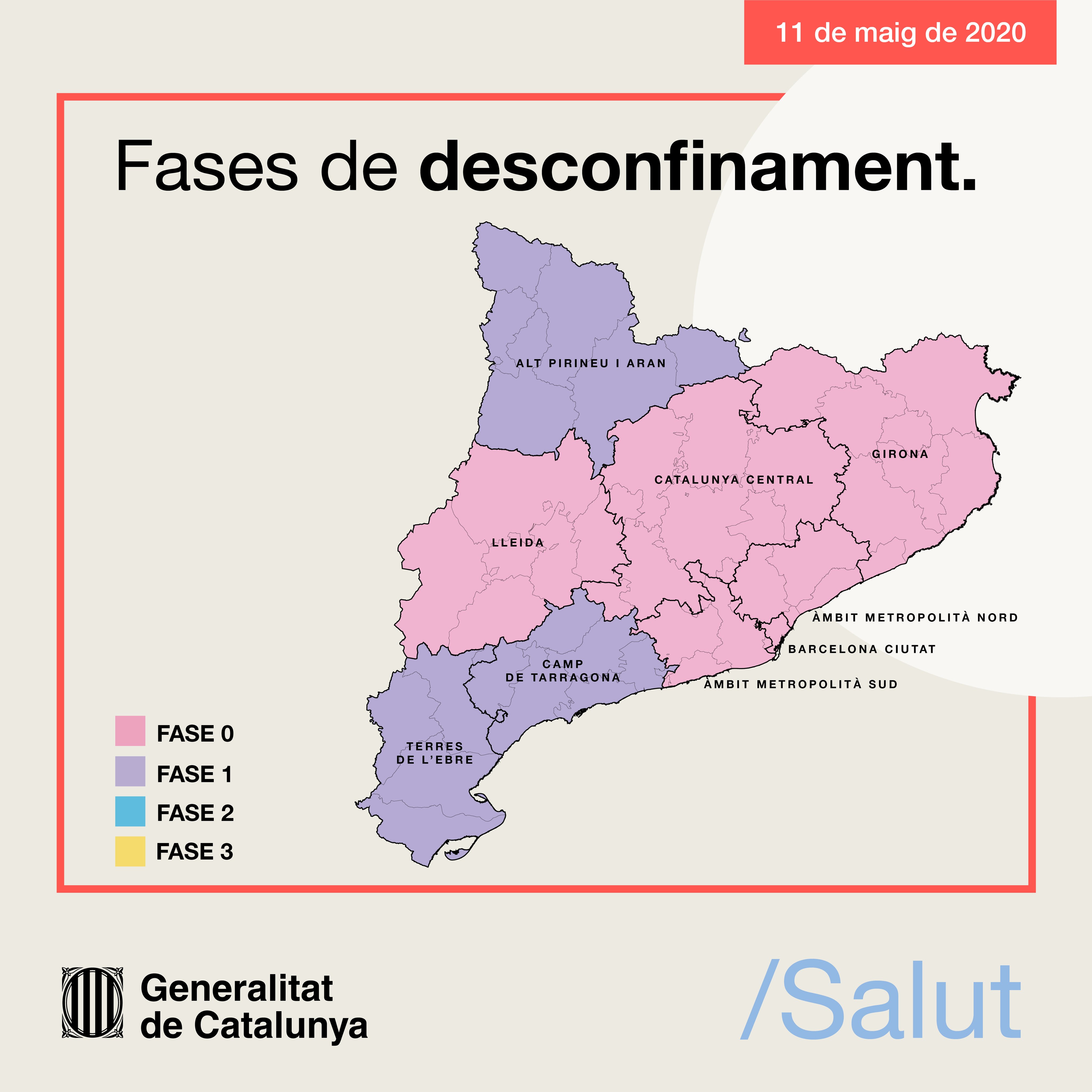 Les úniques tres regions sanitàries de Catalunya que passen avui a la fase 1 són les Terres de l’Ebre, el Camp de Tarragona i l’Alt Pirineu i Aran