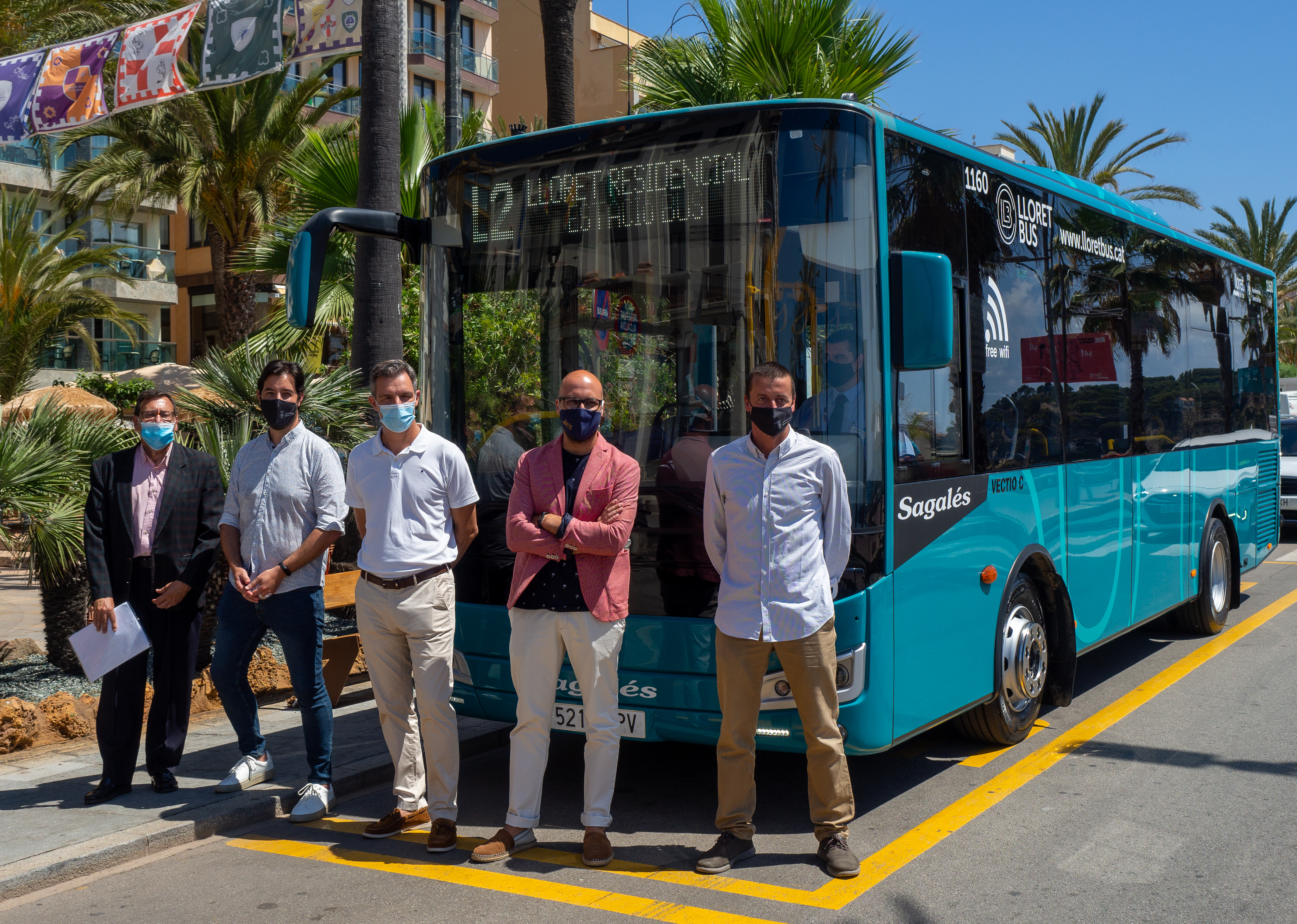 L’alcalde de Lloret de Mar, Jaume Dulsat i el regidor de Mobilitat, Cristian Fernàndez acompanyants de Pedro Muntaner, Director General d'Expansió de Sagalés i el Cap d'Explotació de la base de Lloret, Narcís Sala, han presentat avui el nou bus urbà que s’incorpora a la flota municipal que actualment ja comptava amb cinc vehicles.
