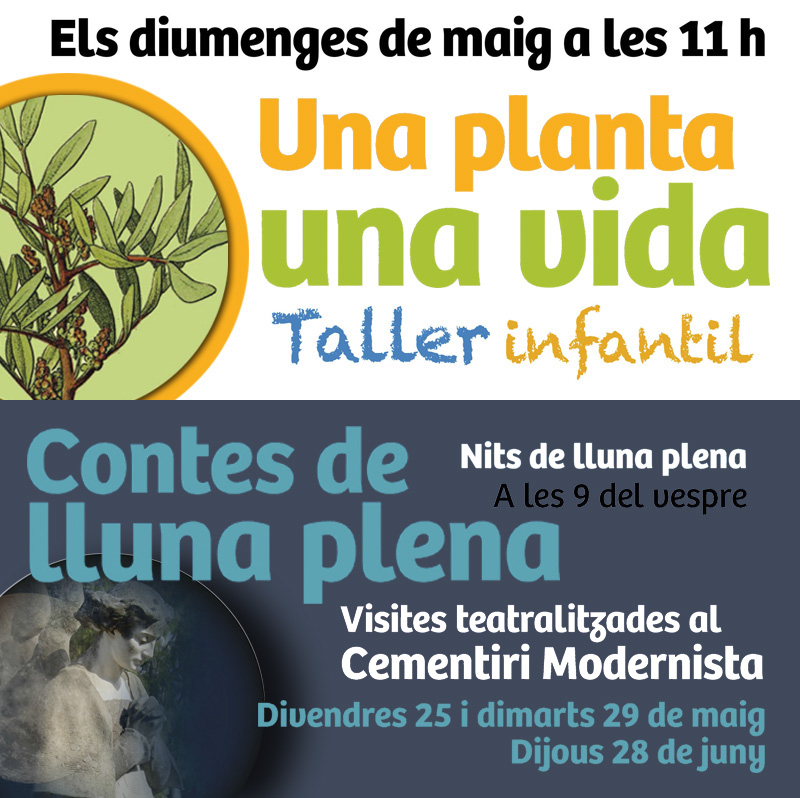 Aquest mes de maig, la Unitat de Patrimoni Cultural de l’Ajuntament de Lloret estrena dues noves propostes per tal de seguir donant a conèixer els equipaments patrimonials de Lloret d’una forma amena. D’una banda, per a tots els diumenges de maig, s’ha programat un taller familiar als Jardins de Santa Clotilde que porta per nom Una planta, una vida. I els dies 25 i 29 de maig i el 28 de juny s’estrena una nova visita teatralitzada al Cementiri Modernista, titulada Contes de lluna plena.