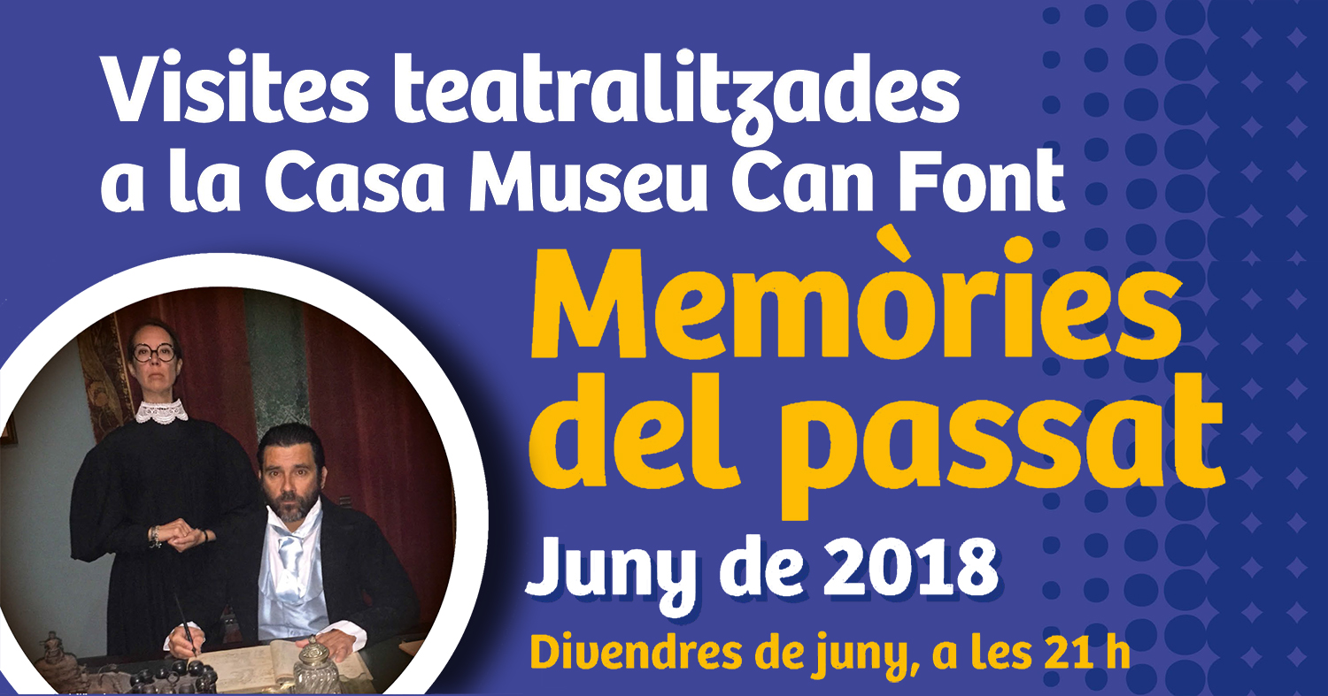 Memòries del passat és el títol de la visita teatralitzada que es podrà tornar a veure els divendres i dissabtes del mes de juny a la Casa Museu de Can Font de Lloret. La visita es va estrenar l’estiu passat i l’èxit i la demanda que va tenir ens ha portat a tornar-la a programar, segons ha dit la directora de Patrimoni Cultural de l’Ajuntament de Lloret, Anna Fuentes. La visita es farà tots els divendres de juny a les 21.00 h en català i, com a novetat, tots els dissabtes de juny, també a les 21.00 h, s’ha programat en castellà.