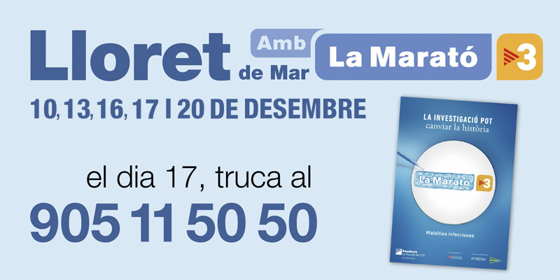 Lloret se suma un any més a La Marató de TV3 amb diferents activitats organitzades per les entitats locals.  S’han organitzat diverses propostes amb l'objectiu de recaptar fons per a la iniciativa solidària, enguany dedicada a les malalties infeccioses, i que s'emet el diumenge, 17 de desembre.