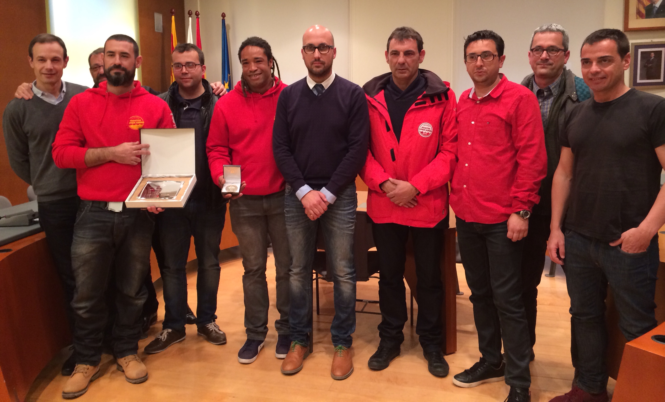 A més de Joel da Silva, de Proactiva Open Arms també van assistir a l’acte Òscar Camps i Iago Mena, als quals es va fer entrega d’una placa en reconeixement a les tasques realitzades a Lesbos.