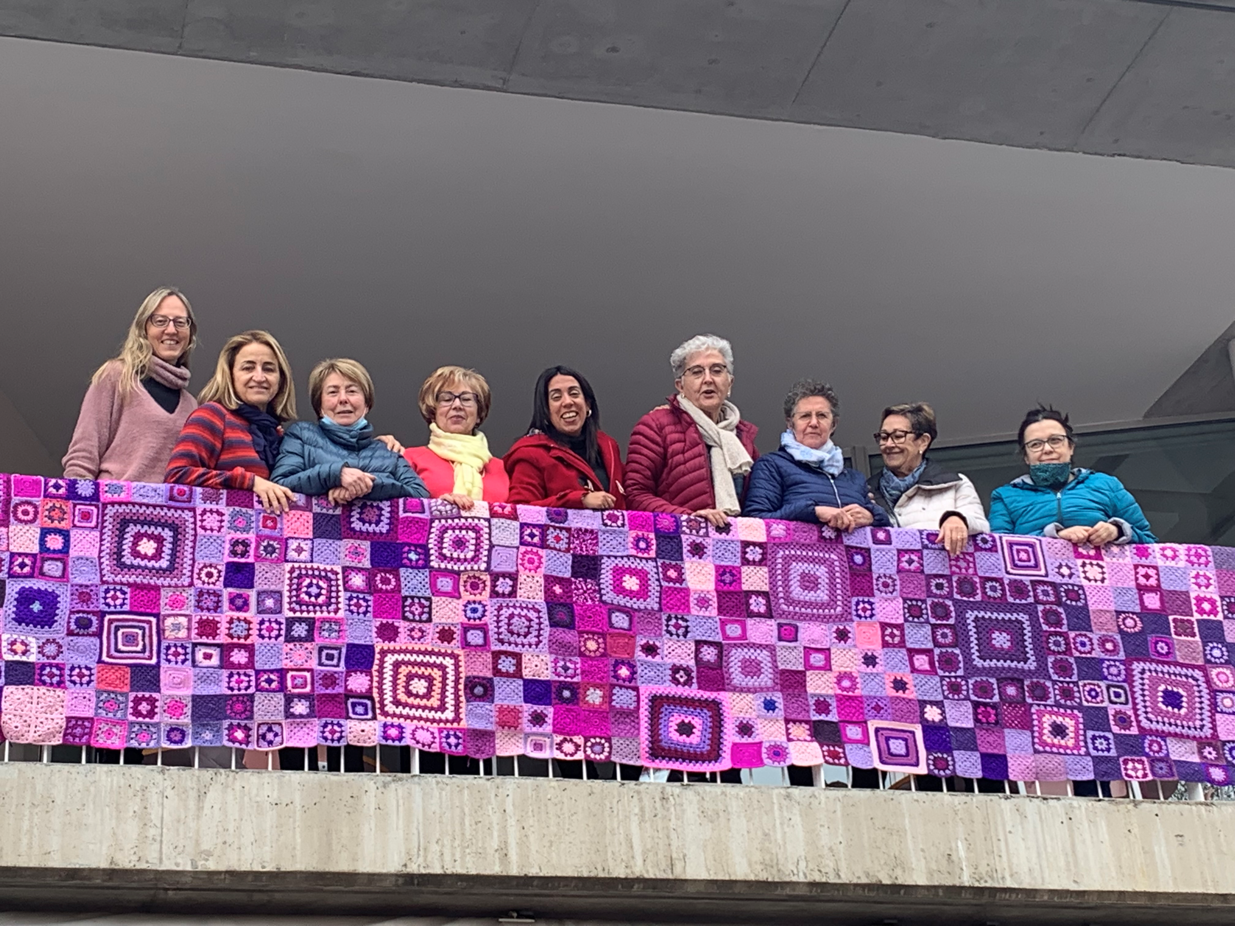 Un tapís lila fet de ganxet per 100 persones dona el tret de sortida al Dia Internacional de les Dones a Lloret