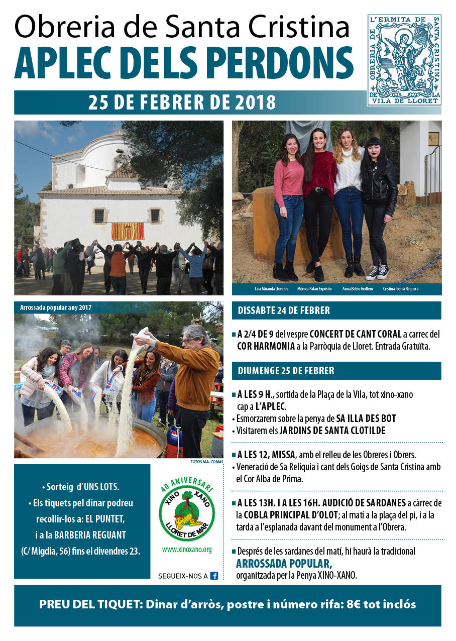 Aplec dels Perdons: Caminada fins a Santa Cristina. Missa, Sardanes Arrossada