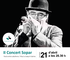 Un concert que repassa l’extens repertori del cantautor Joaquín Sabina. Durant la vetllada es presentarà la programació musical de l’estiu a Lloret de Mar. Durant el concert es podrà degustar un sopar fred a base de tapes.