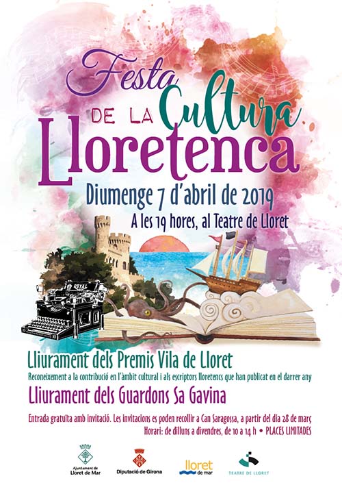 Lliurament 15a. Edició Premis Literaris Vila de Lloret, 5a. Edició als millors blogs i 30è. Guardó Sa Gavina. L’entrada és gratuïta amb invitació que podreu recollir a Can Saragossa, a partir del dia 28 de març.