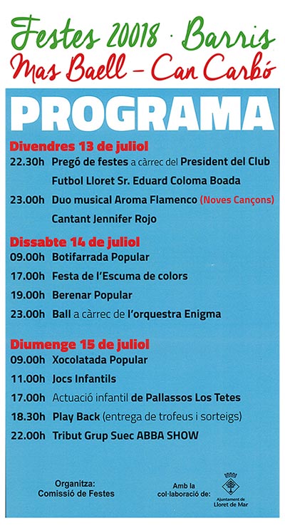 Festes de veïnat de Mas Baell i Can Carbó. Programa a part.