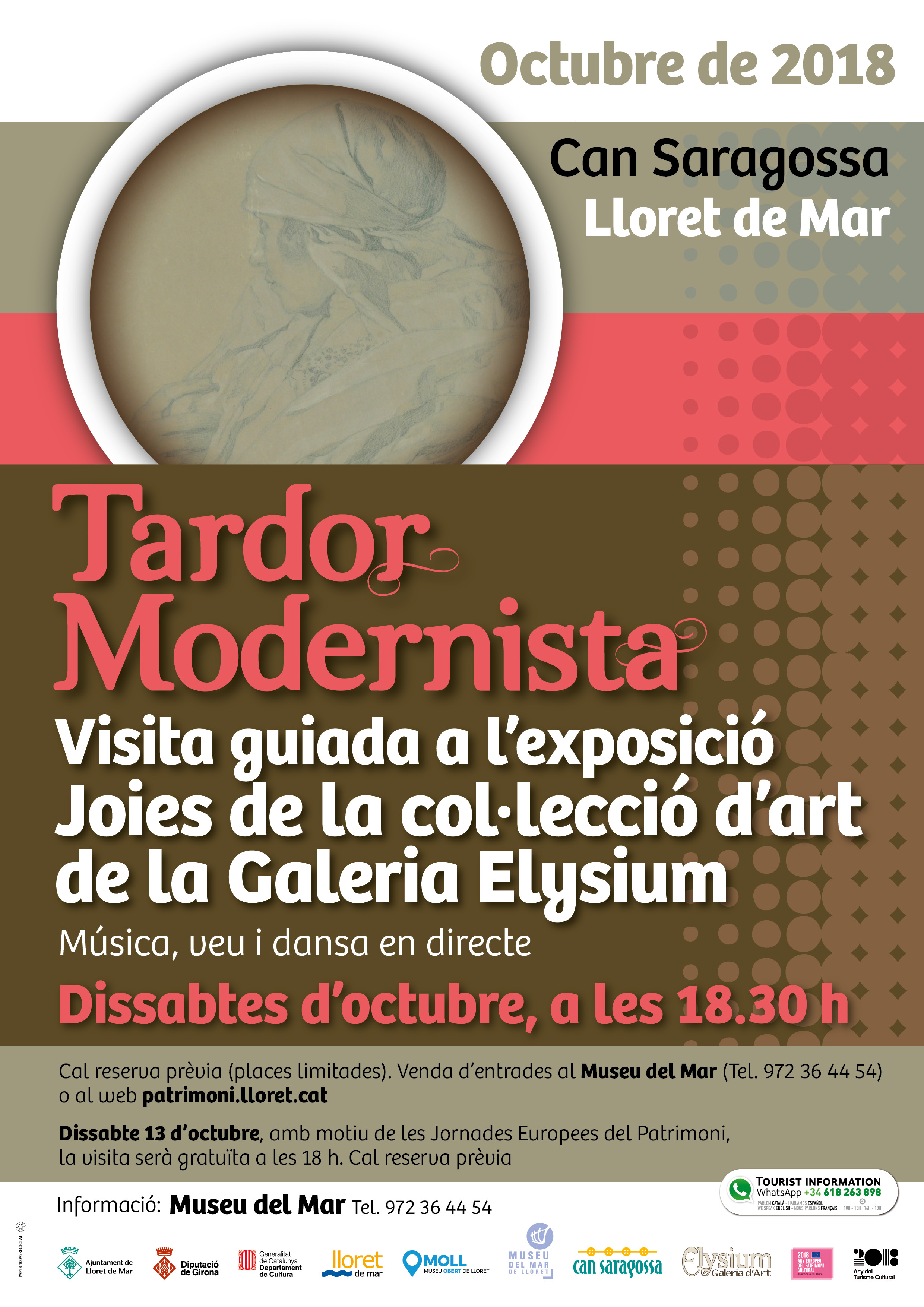 Visita guiada a l'exposició Joies de la col·lecció d'art de la Galeria Elysium, música, veu i dansa en directe, places limitades, reserva prèvia al Museu del Mar o a Patrimoni.lloret.cat