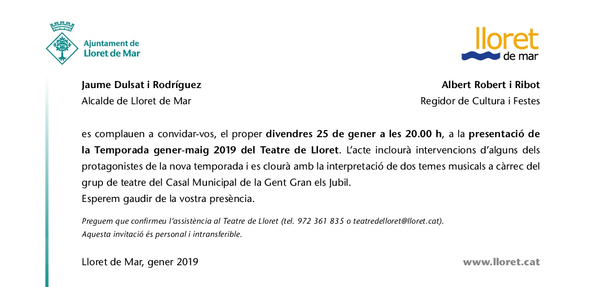 Sou a: Inici / Municipi / Agenda / Activitats / Presentació de la nova temporada de teatre i cineclub