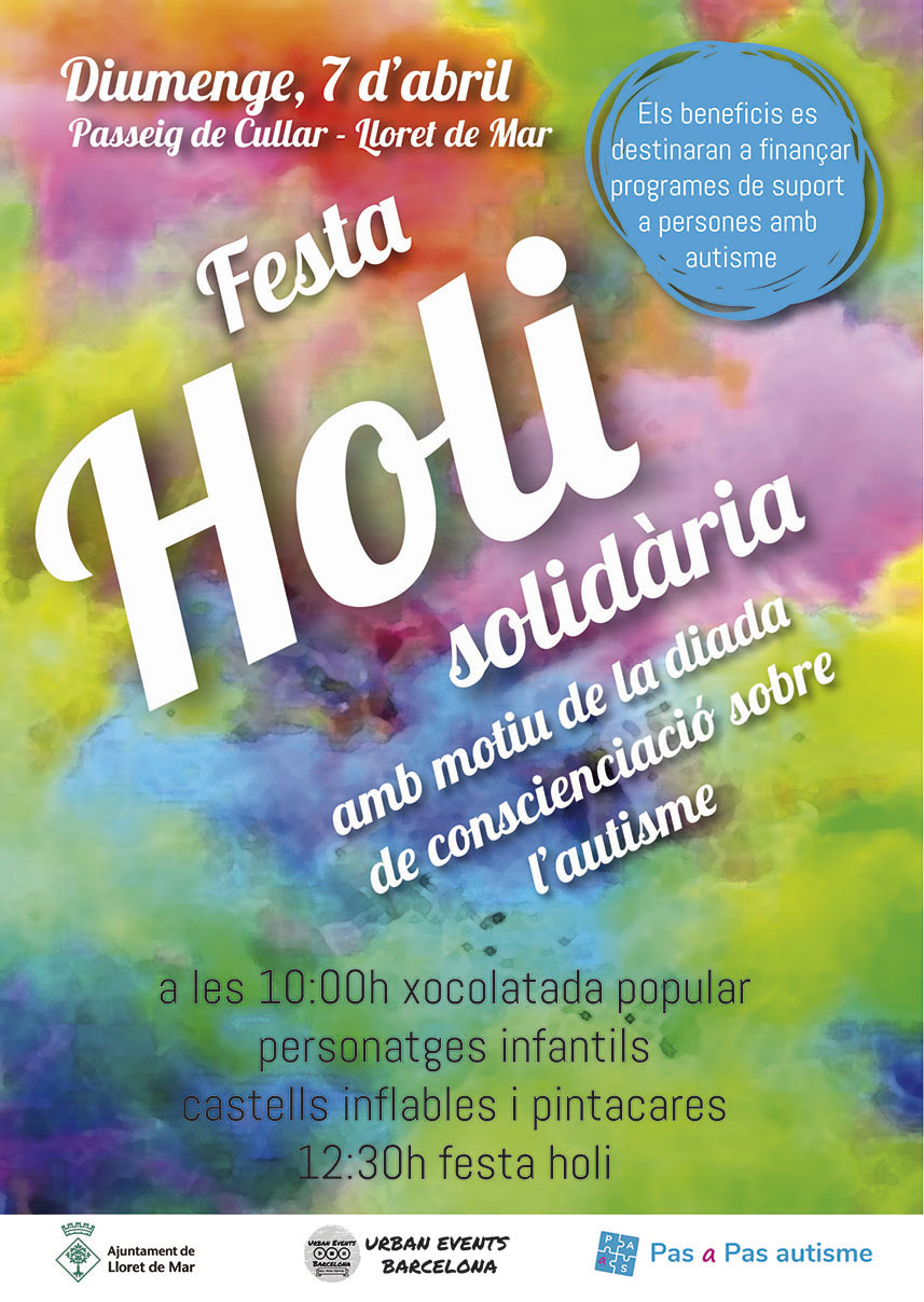 Festa Popular organitzada per l'Associació Pas a Pas cap a la inclusió de les persones amb autisme. Horari de les activitats: 10h Xocolatada popular. 11h Actuació personatges infantils (Mic i Lol). 11.30h Actuació grup musical 'Porto Bello'. 12h Rifa benèfica. 12.30h Festa Holly