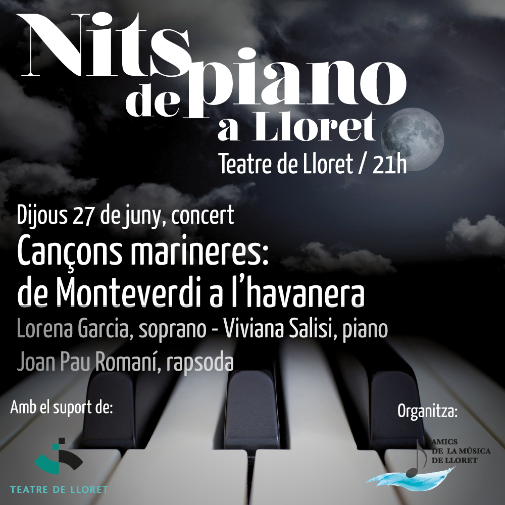 Concert-espectacle amb un recull de cançons que tenen al mar com a referència creativa, un viatge musical que surt de port amb la música barroca de Claudio Monteverdi i que recalarà en diversos ports de grans compositors de diverses èpoques: Joseph Haydn, Tchaikowsky, Isaac Albéniz, Frederic Mompou, Josep Toldrà, passant per les sarsueles de Francisco Barbieri i Mariano Soriano Fuertes i la música marinera del compositor de Pollença Miquel Capllonch, fins arribar a l’havanera de la mà entre d’altres del compositor basc Sebastián Iradier. Un riquíssim concert amb incursions de poesia marinera. Per acabar, degustarem un cremat, la beguda preferida dels llops de mar catalans.