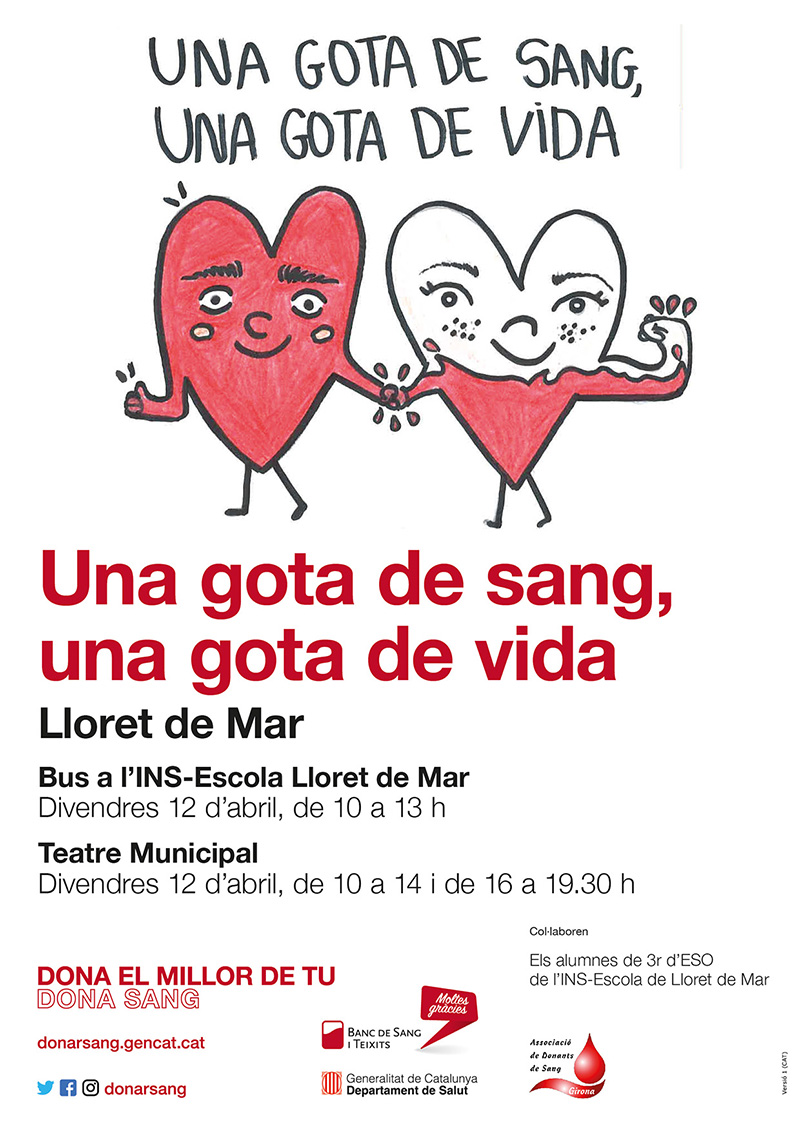 Jornada de donació de sang al Teatre de Lloret de 10 a 14 h i de 16 a 19.30 h. Bus del Banc de Sang davant de l'Institut-Escola de Lloret de Mar de 10 a 13 h.