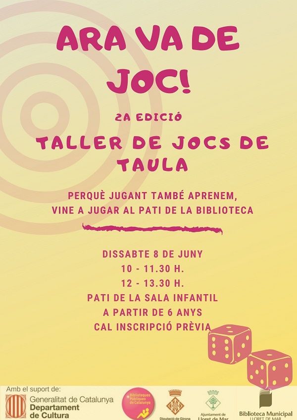 Dissabte 8 de juny, participa al taller de jocs de taula a la sala infantil de la biblioteca.