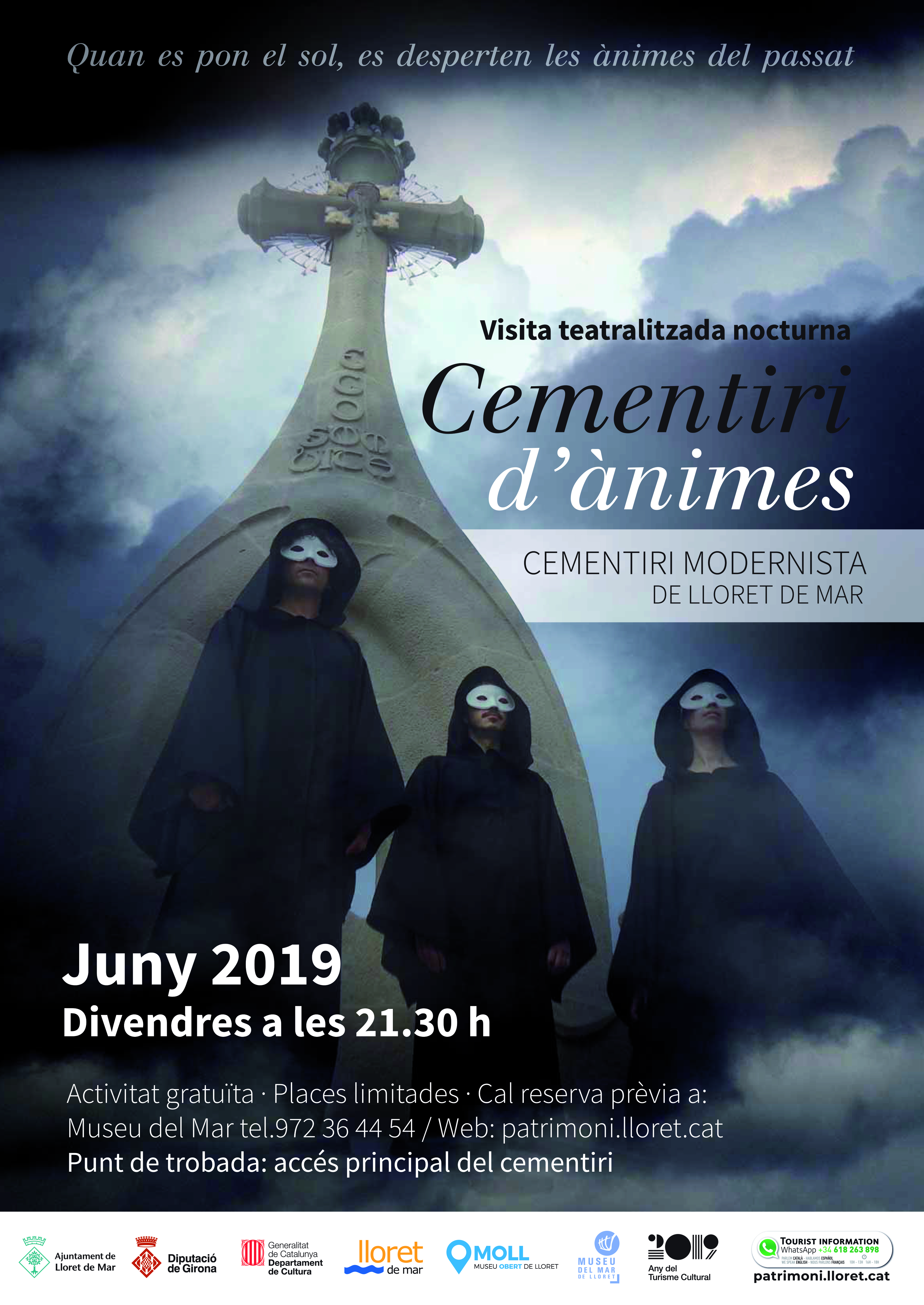 Visita teatralitzada al Cementiri Modernista de Lloret de Mar, al llarg del recorregut nocturn, una sèrie d'ànimes de diferents personatges relacionats amb els panteons guiaran al públic a través de la historia del Cementiri, visita gratuïta, places limitades, reserva d'entrades al Museu del Mar o al Web.