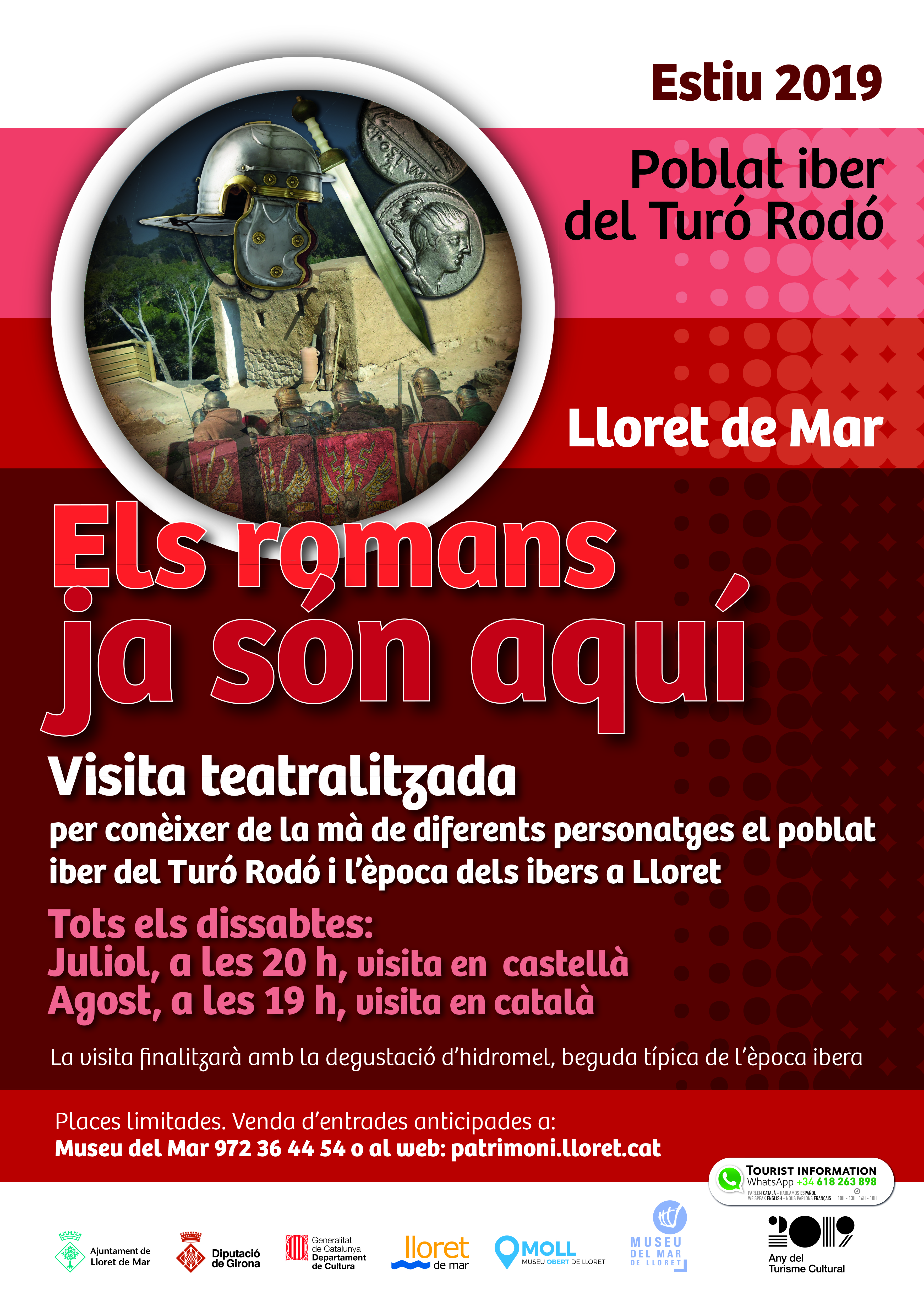 Visita per conèixer de la ma de diferents personatges l'equipament del Jaciment ibèric del Turó Rodó i l'època dels ibers a Lloret, acabarem amb la degustació d'una beguda típica. Visita en català, places limitades, venda d'entrades anticipades al Museu del Mar o al Web.