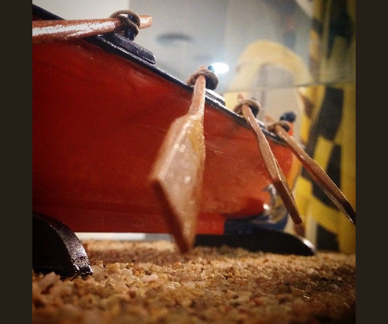 Exposició dels nou clubs de rem que participaran a la regata S'amorra amorra i regata de llaguts en què participaran joves d'entre 13 i 17 anys. En punt d'informació és El Puntet.