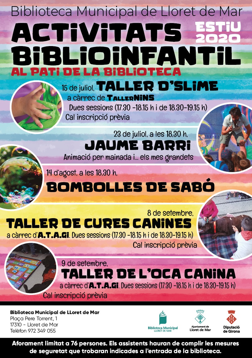 - Taller de l’Oca canina: Els infants hauran de fer una acció amb el gos a cada casella. Dia i hora: 9 de setembre, de 17.30 a 18.15 h i de 18.30 a 19.15 h
