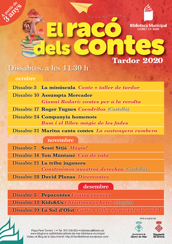 Al final de la sessió de contes descobrirem quina és la més màgica de totes les fórmules màgiques que haurem assajat. Obert a tothom, no cal inscripció prèvia. Aforament limitat. És obligatori l’ús de mascareta, la neteja de mans amb gel hidroalcohòlic i el compliment de totes les mesures de seguretat que s’indiquin a l’entrada de la biblioteca.