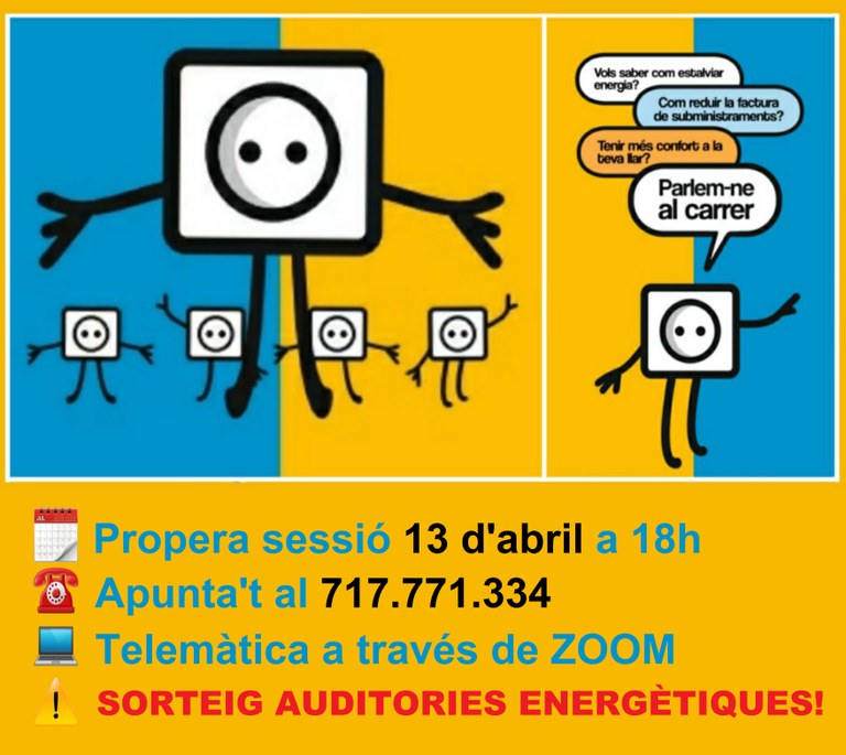 Sessions informatives, en format virtual, on s'explicaran mesures per reduir elconsum d'energia a les llars, com llegir la factura elèctrica, accions per