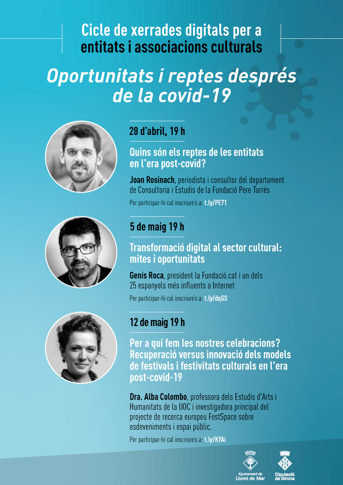 5 de maig: Transformació digital al sector cultural, a càrrec de Genís Roca, president de la Fundació.cat i un dels 25 espanyols més influents a internet.
