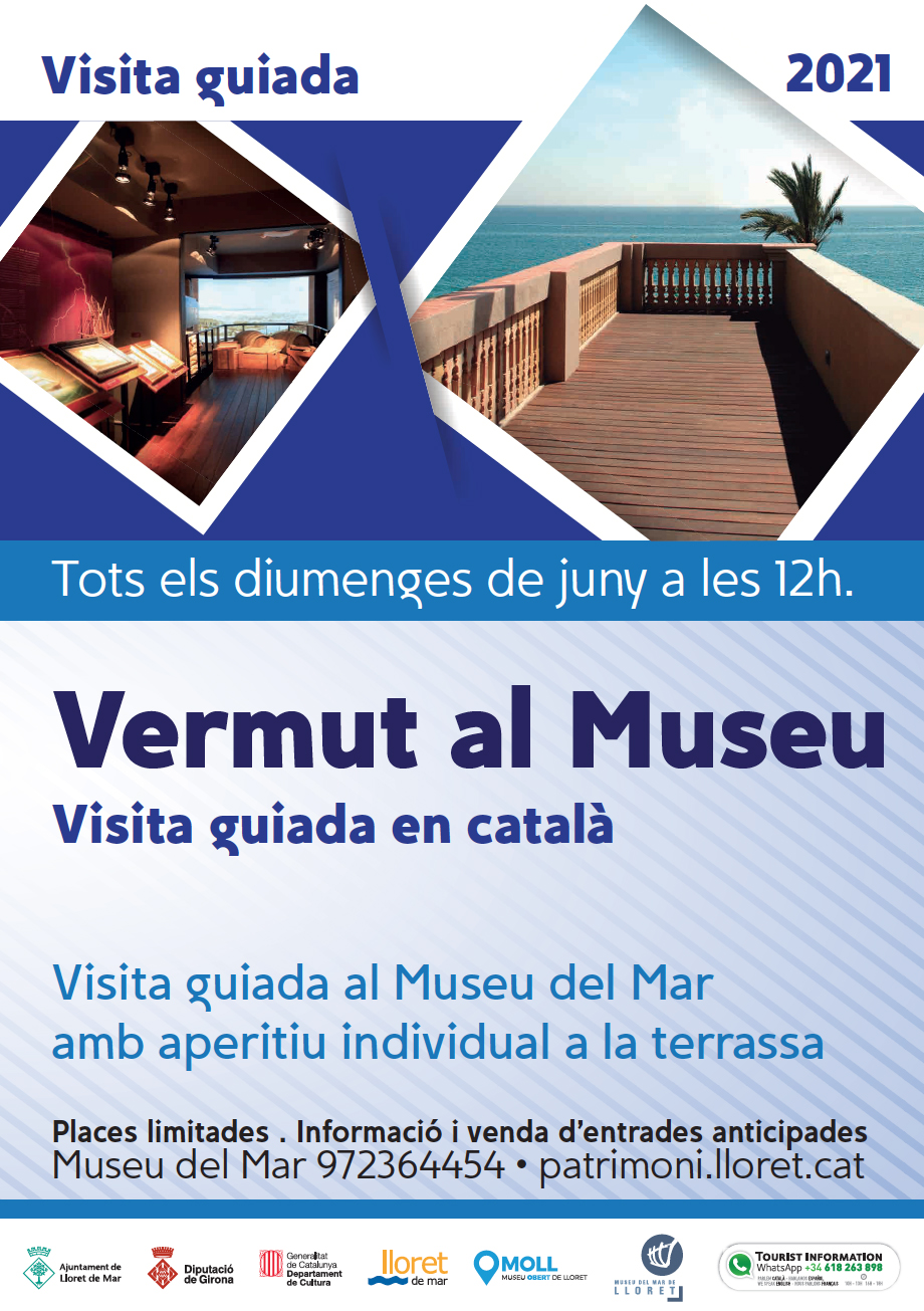 Tots els diumenges de juny,visita per conèixer la història dels navegants de Lloret de Mar, en acabar la visita gaudireu d'un vermut amb aperitiu individual i de les magnífiques vistes al mar a la terrassa del Museu. Places limitades. Informació i venda d'entrades anticipades al Museu del Mar tel. 972364454 i al web