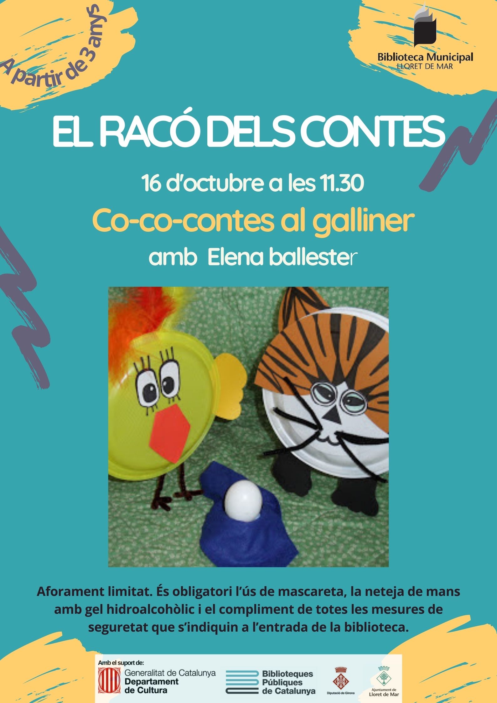 La biblioteca, a l’hora del conte, molt sovint es converteix en un galliner. Doncs aprofitem-ho, no hi ha mal que per bé no vingui… i és que aquest cop les gallines seran molt benvingudes i ens explicaran un munt d’històries sobre galls, gallines, pollets i galliners.