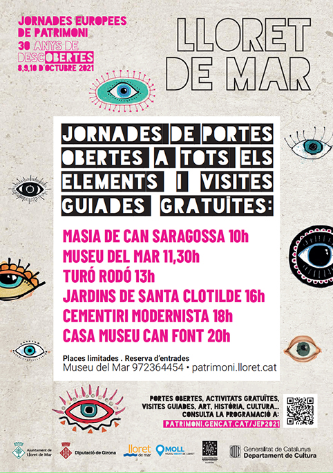 Celebrem les Jornades Europees de Patrimoni oferint jornades de portes obertes a tots els elements del MOLL de Lloret en els horaris habituals de cada espai i visites guiades gratuïtes, amb reserva prèvia al Museu el Mar, tel.972364454 o al web patrimoni.lloret.cat