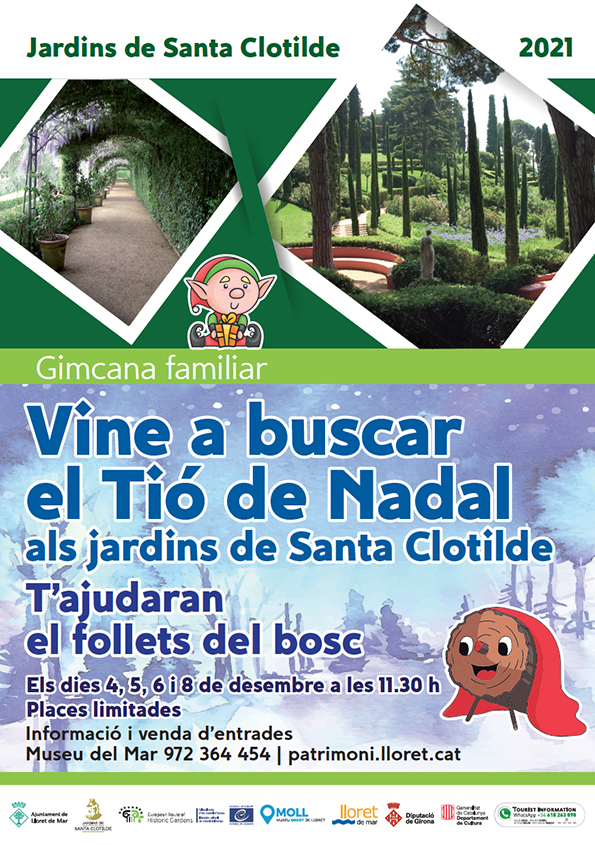 Gimcana familiar, el Tió de Nadal s'ha amagat als Jardins de Santa Clotilde. Una sèrie de follets entremaliats, ajudaran als nens i nenes a trobar-lo i cagarà per