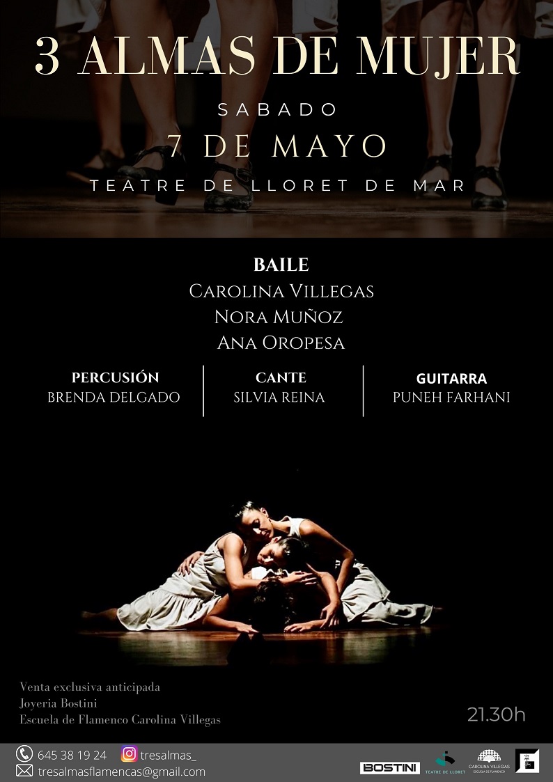 VENDA D'ENTRADES:Punt de venda 1: Joyería Bostini, C/ de la Vila, 40. Horari: de 10 a 13 h i de 17 a 20 h. Punt de venda 2: Escuela de Flamenco Carolina Villegas. Telèfon: 645 381924 i a/e:carolina@bostini.com