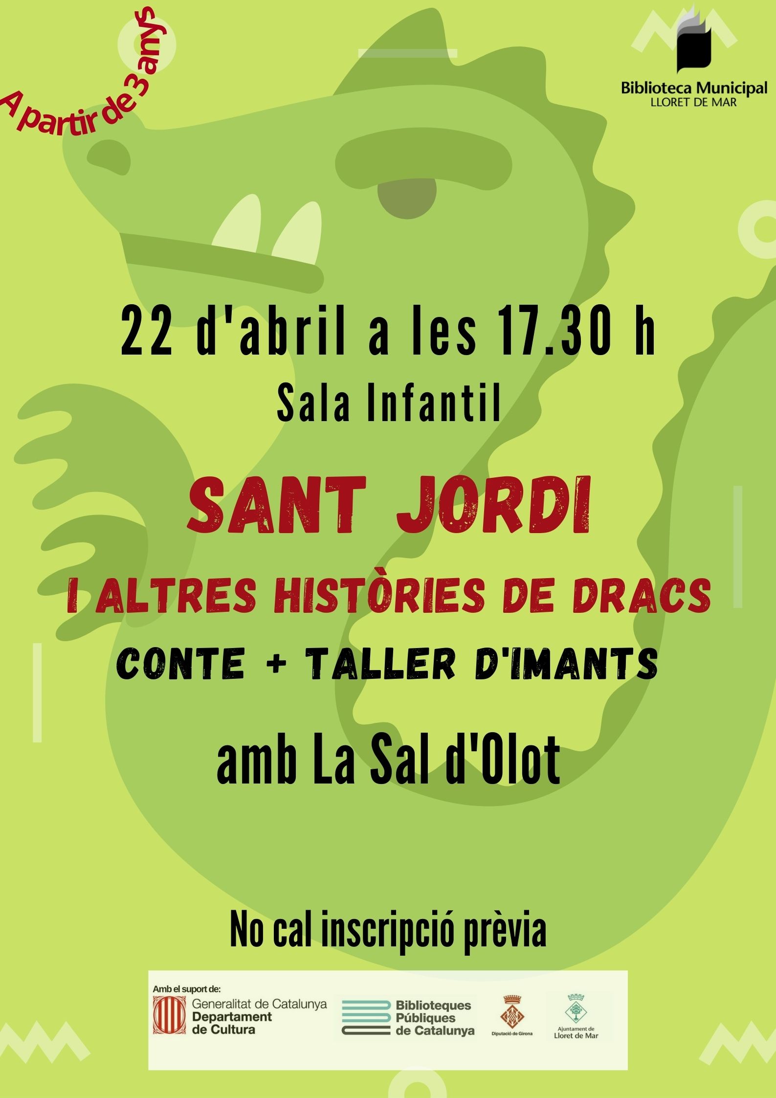 Prop d’un poble ronda un rèptil gegant i alat, d’alè pudent i enverinat… Aquest podia ser l’inici de la llegenda de Sant Jordi. Escoltarem la història del cavaller, la princesa i el drac que us hem musicat per celebrar aquesta festa dels llibres, les roses i els dracs. I després vine a dibuixar i fes-te un imant per a la diada de Sant Jordi 2022.