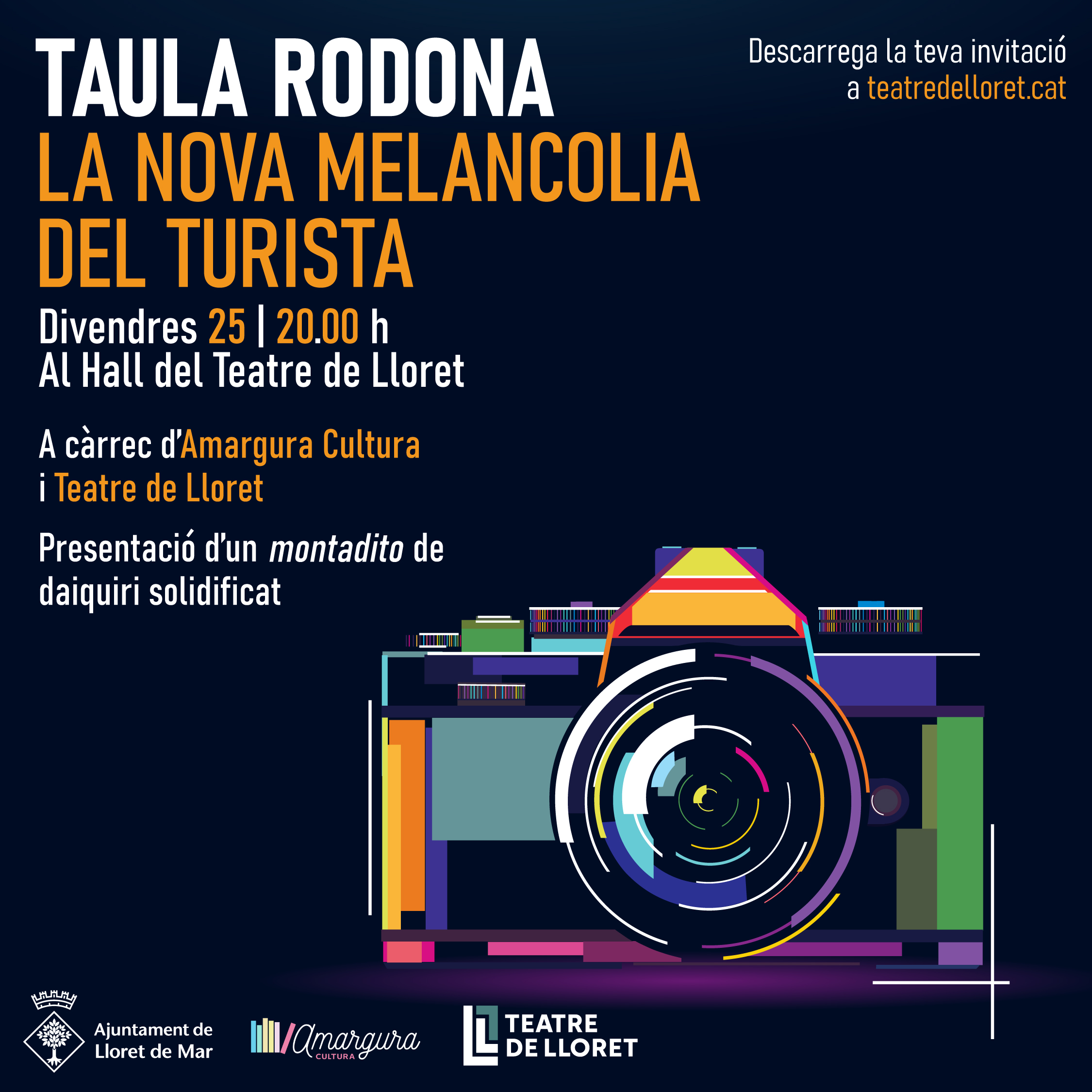 El proper dissabte 26 de març tenim un espectacle titulat LA MELANCOLIA DEL TURISTA dins del LLORET ESPAI OFF: és un espectacle de petit format per a 42 espectadors que parla de la idea de paradís i de com ens imaginem els nostres viatges turístics i en concret parla de Cuba i Acappulco. Hem muntat una activitat paral·lela amb Amargura Cultura el divendres 25 de març a les 20.00 h al hall del Teatre de Lloret. Consisteix en una taula rodona organitzada per Amargura Cultura, presentarem un montadito de daiquiri solidificat i exposarem fotografíes de Cuba fetes per l’Albert Navarro.