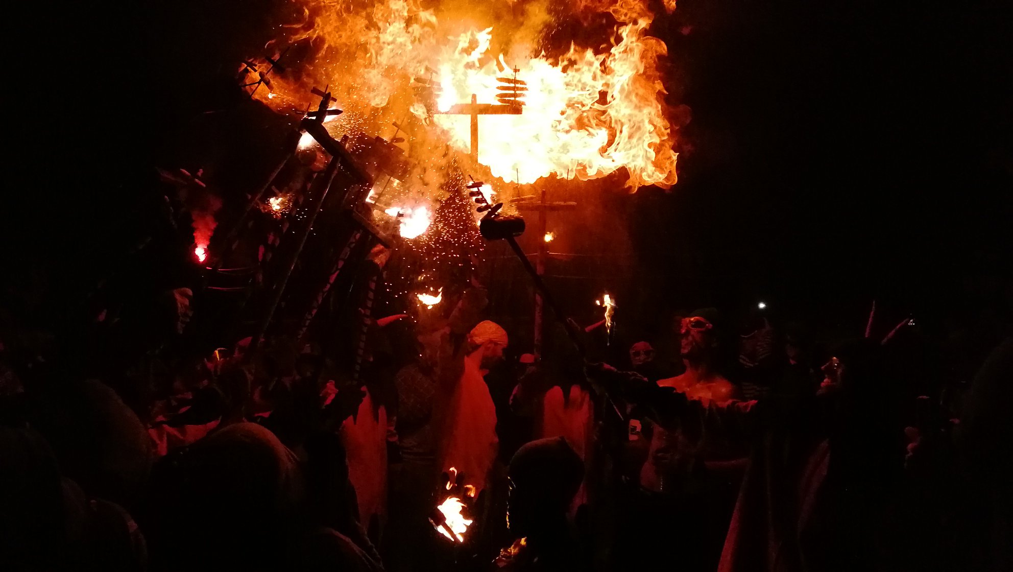Correfoc a càrrec de la colla de diables Sa Forcanera de Blanes. Sortida del Museu del Mar i arribada a la Roca d'en Maig.