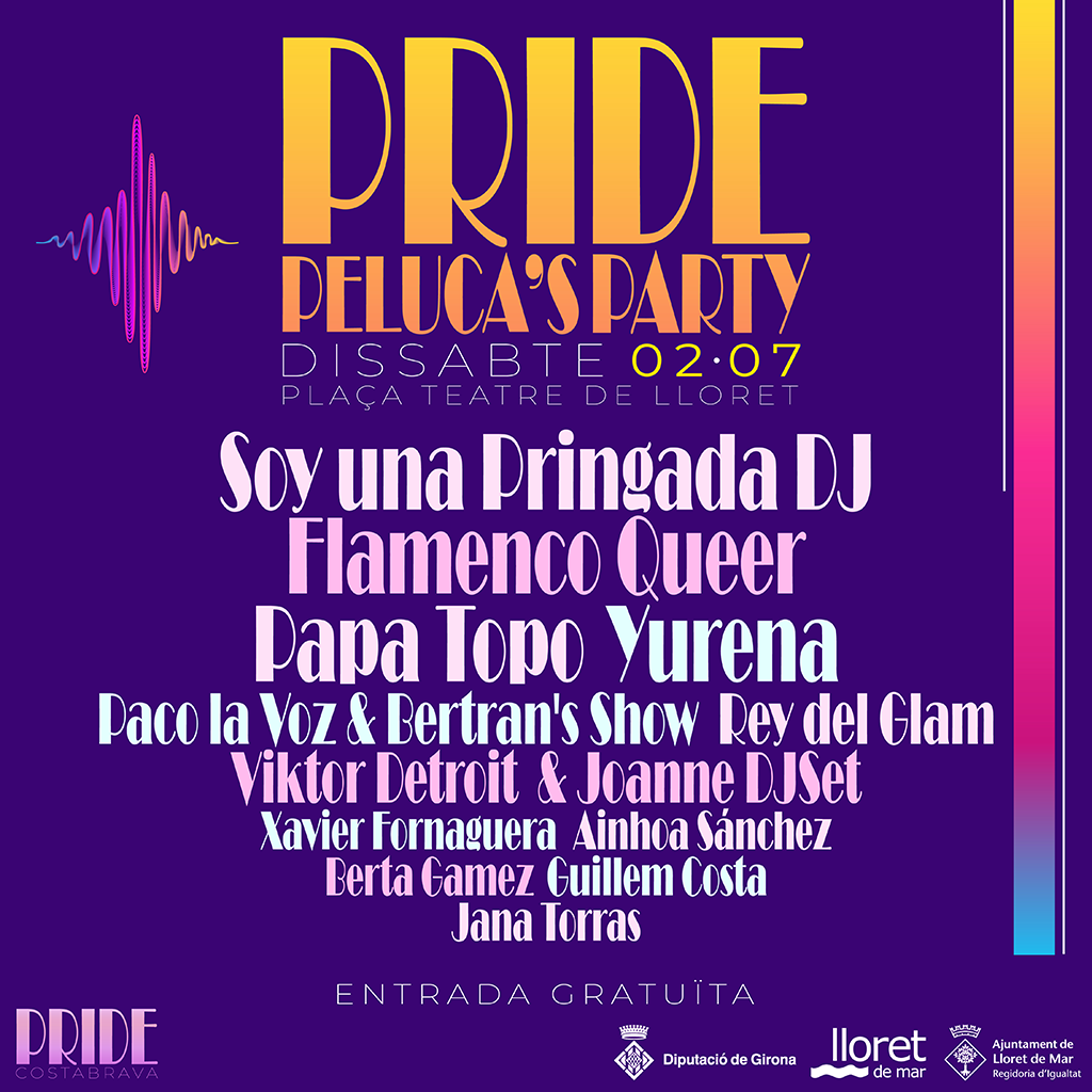 Batejada amb el nom de PELUCA'S PARTY, el Pride, és la festa que s'organitza amb motiu del Dia Internacional de l'Orgull LGBTIQ+, data en què el col·lectiu LGBT+ celebra, reclama i demana tolerància i igualtat per a les persones lesbianes, gais, bisexuals, transsexuals, intersexuals, queer i altres orientacions sexuals o identitats de gènere socialment marginades i oprimides. A Lloret de Mar i per extensió a la Costa Brava arriba la primera edició d'aquesta festa que comptarà amb la participació del jove talent local que cantarà l’himne del pride 2022 i altres espectacles.