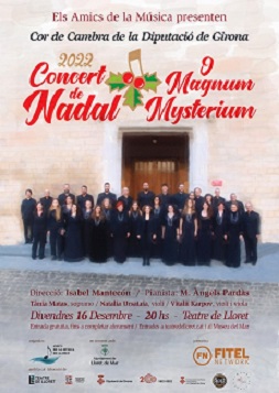 SINOPSI: Els Amics de la Música de Lloret presenten el cor de Cambra de la Diputació de Girona. Aquest concert està dedicat a la música relacionada amb el Nadal.