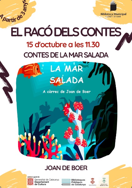 En Joan ens narrarà les seves grans aventures pels 7 mars: Contes de pirates, mariners, pescadors i fins i tot alguna sirena! No et perdis aquesta sessió tan refrescant Dia i hora: 15 d'octubre, a les 11.30 h Lloc: Sala infantil – Biblioteca Municipal Lloret de Mar A càrrec de: Joan de Boer Edat: a partir de 3 anys Idioma: català