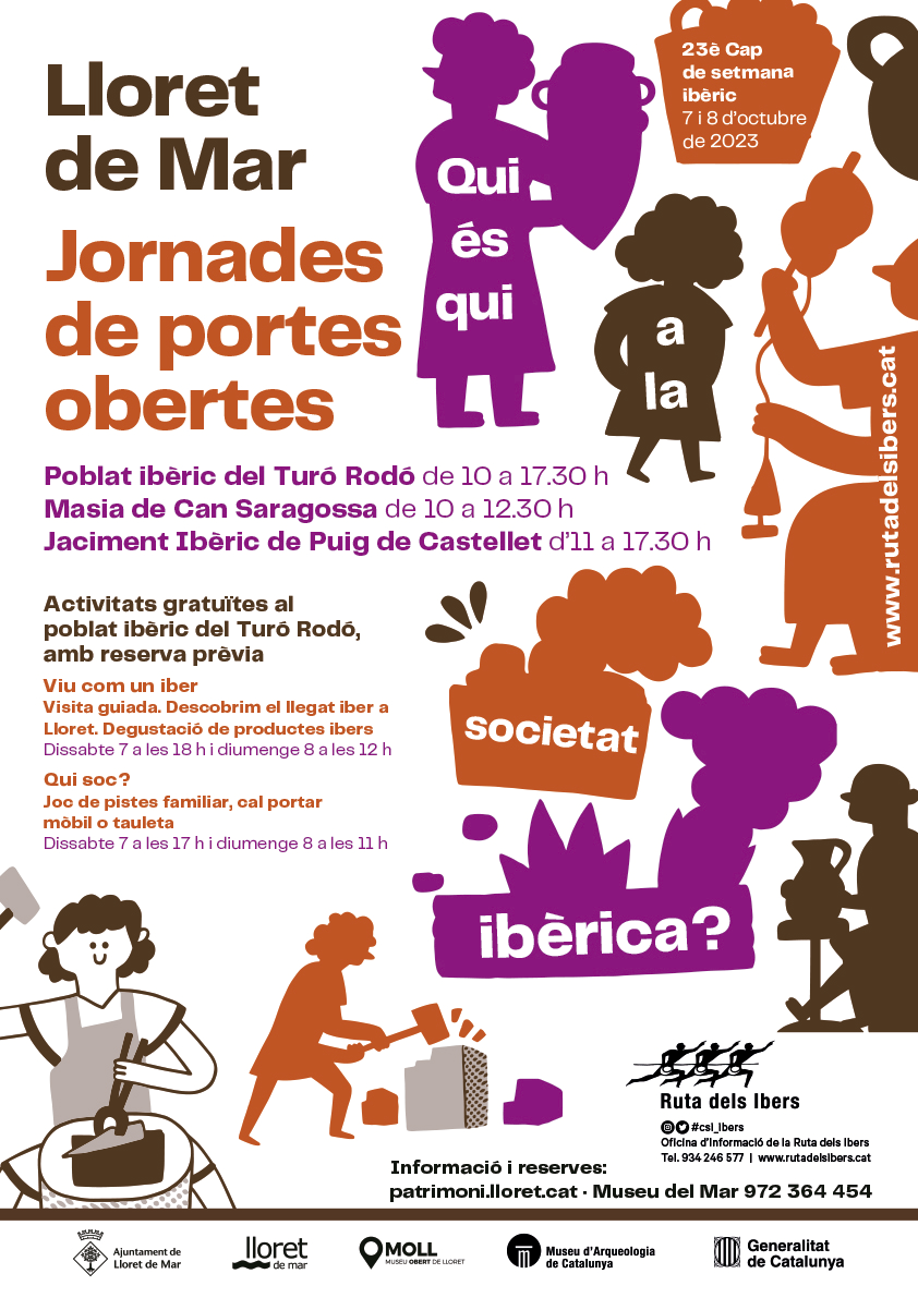 Activitats gratuïtes al poblat ibèric del Turó Rodó. Viu com un iber - Visita guiada amb degustació de productes ibers, dissabte 7 a les 18 h i diumenge 8 a les 12 h. Qui soc? Joc de pistes familiar, Cal portar mòbil o tauleta, dissabte 7 a les 17 h i diumenge 8 a les 11 h. Places limitades amb reserva prèvia al Museu del Mar 972 364 454 o al web