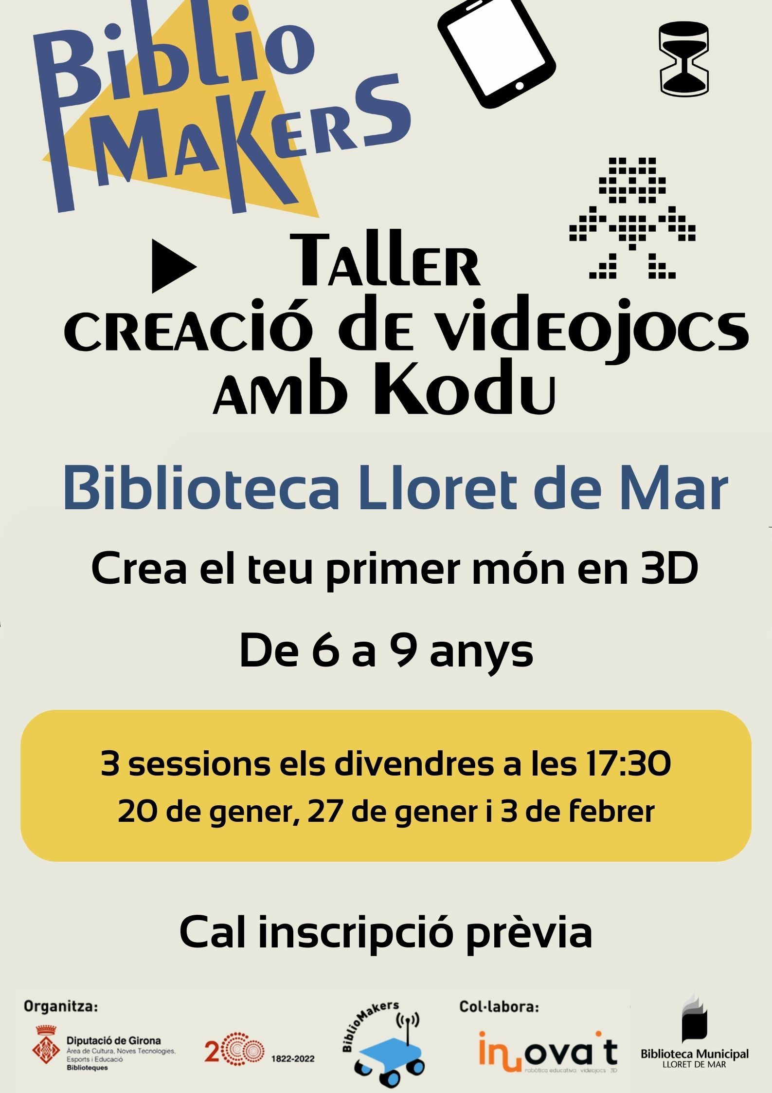El projecte bibliomakers, gestionat pel Servei de Biblioteques de la Diputació de Girona, es crea amb l’objectiu de dotar d’un espai tecnològic a les biblioteques gironines. S’ofereixen una sèrie de tallers de formació en robòtica, programació i creació de videojocs, entre d’altres A la Biblioteca de Lloret de Mar, hi participem amb el taller “Crear el teu primer món en 3D”, que es realitzarà en tres sessions.