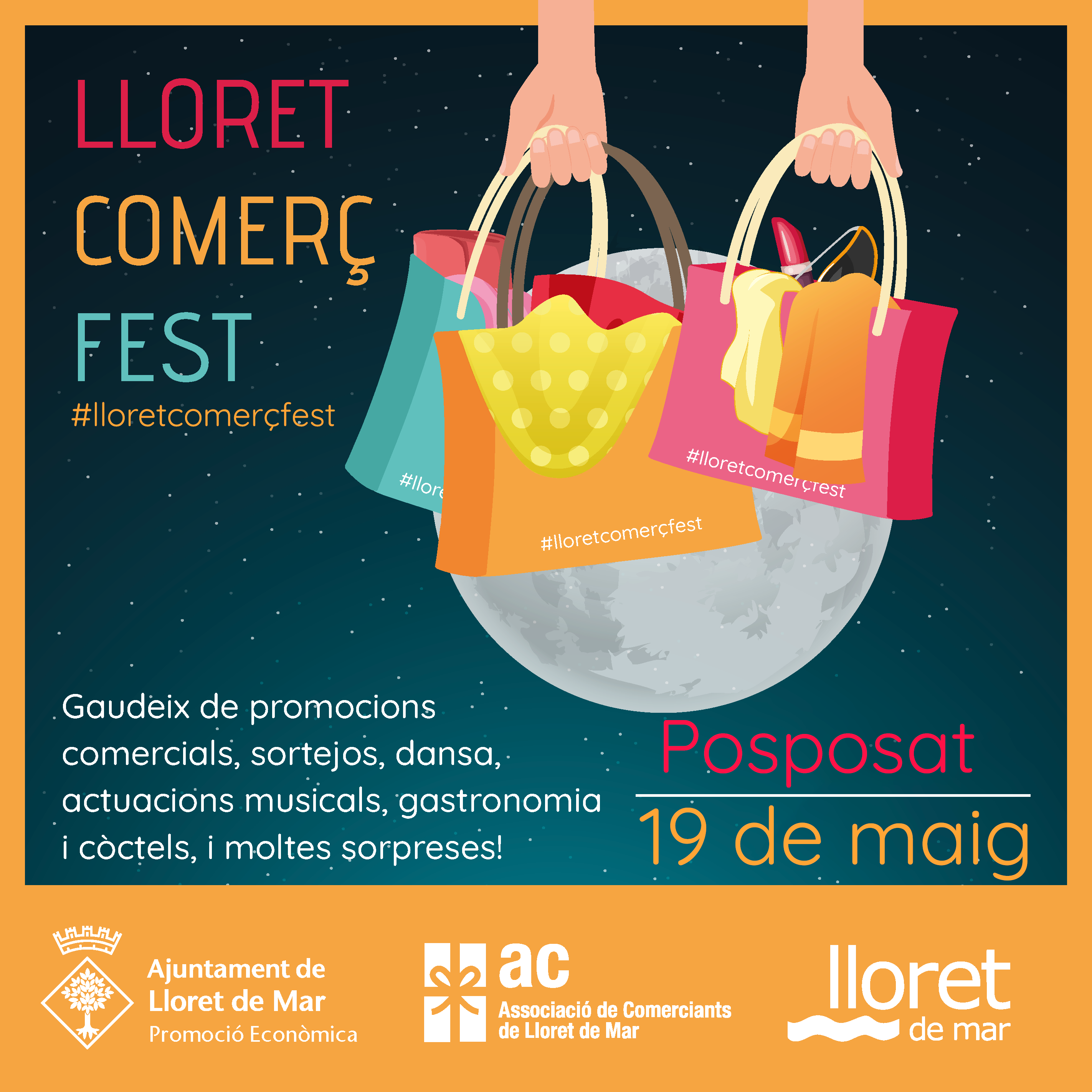 Lloret Comerç Fest. Nit de compres, gastronomia, música, dansa i diversió, de 17h-00.30h. Programa d'activitats (PROPERAMENT).