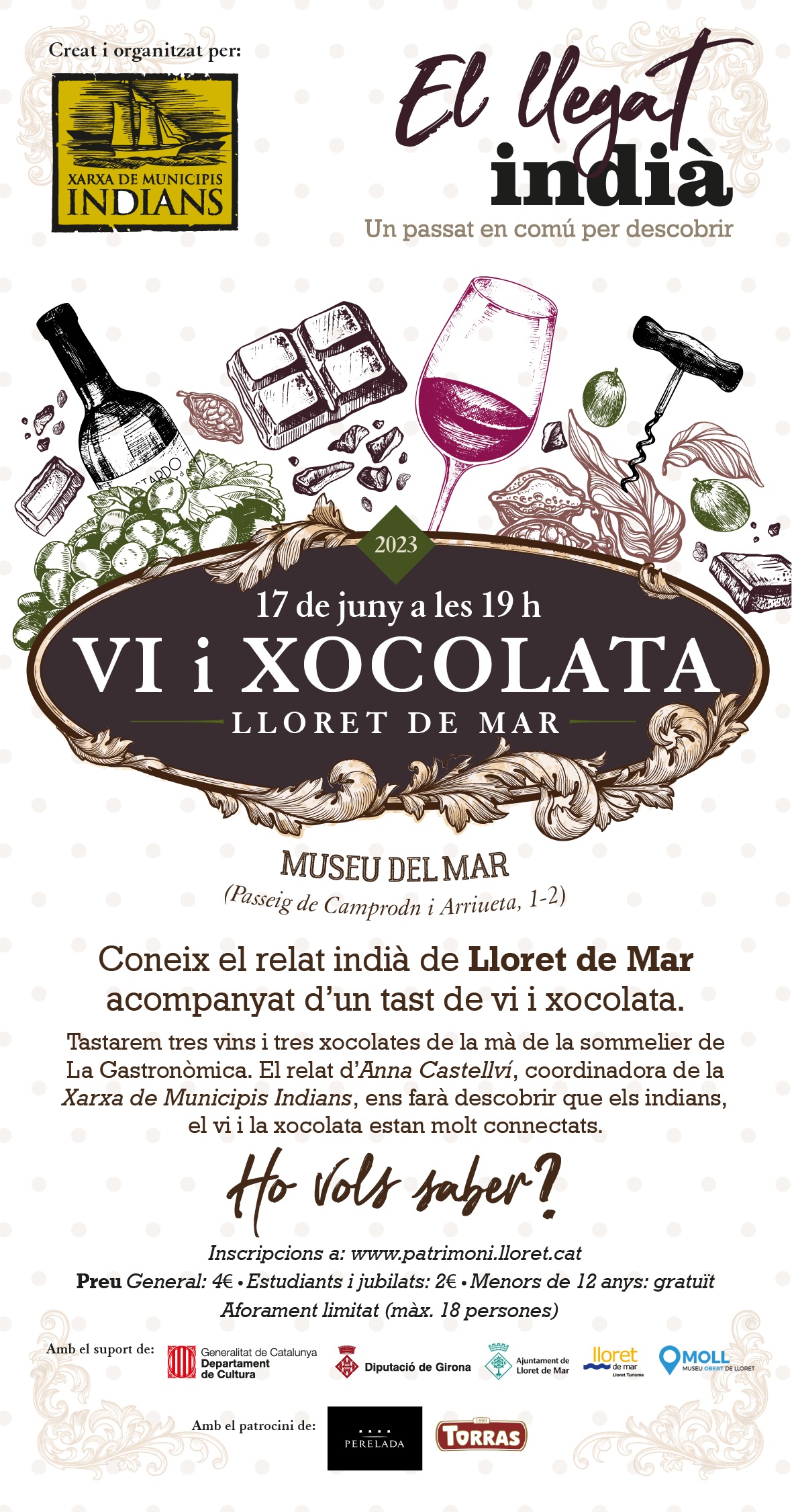 Vine a conèixer el relat indià de Lloret de Mar, acompanyat d'un tast de vi i xocolata. Places limitades. venda anticipada d'entrades a la web o al Museu del Mar